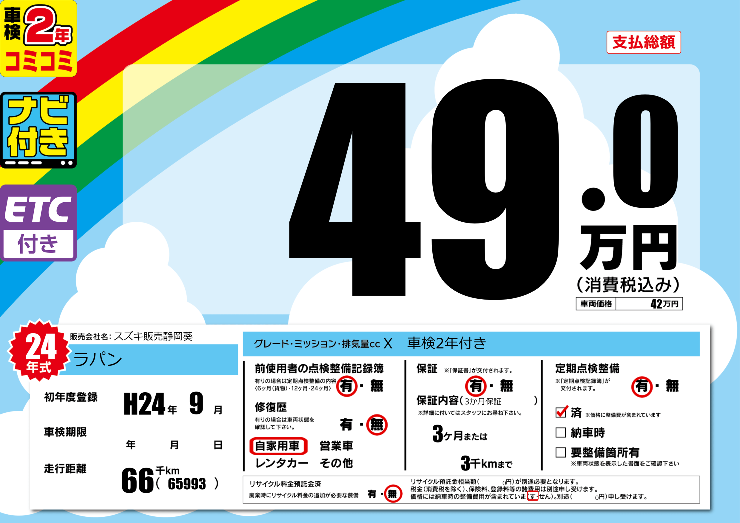 | 定期点検整備 | 定期点検整備あり 定期点検整備済み | ||