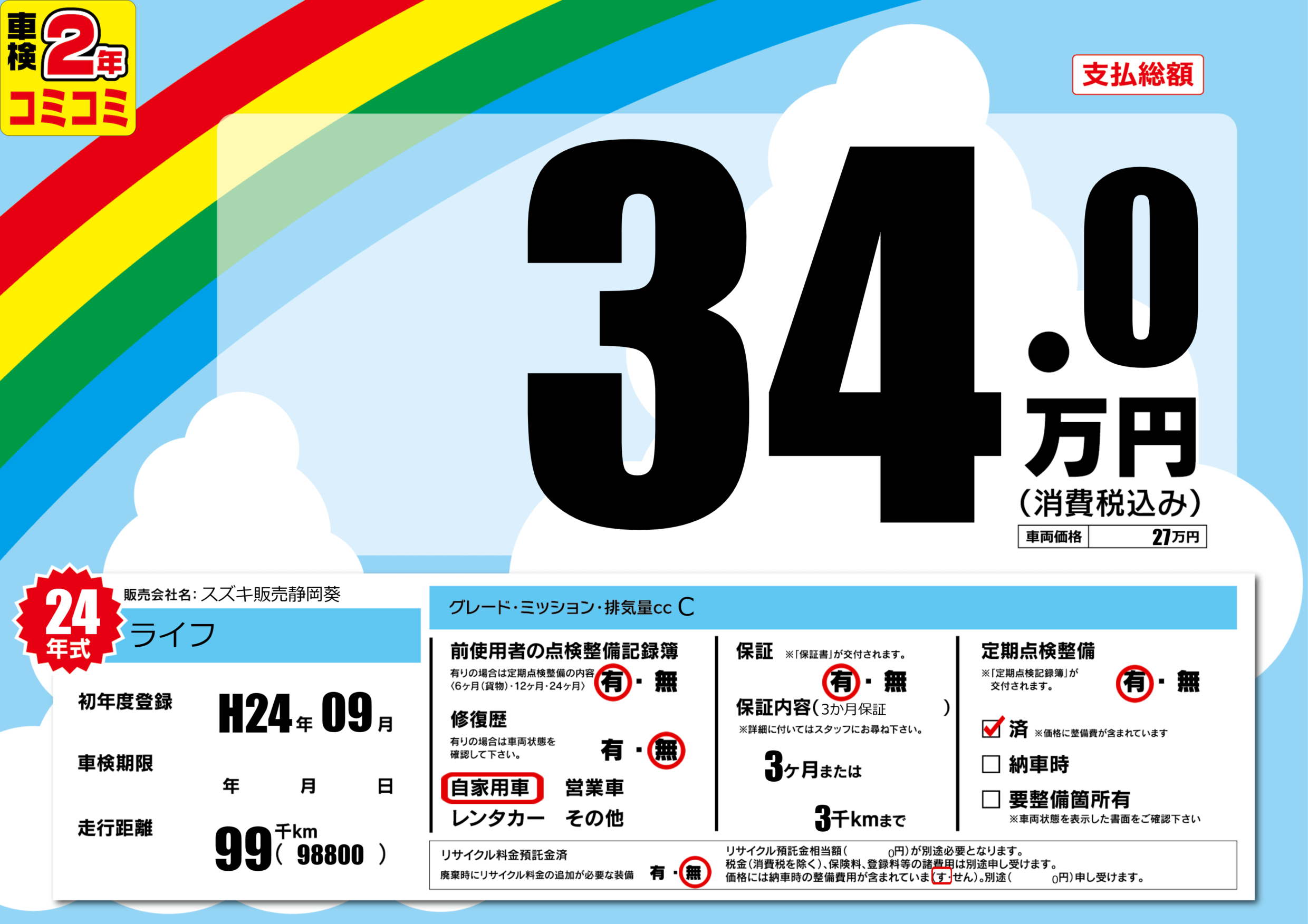 | 走行キロ | 9.9万km | 初年度登録 | H24年09月 |