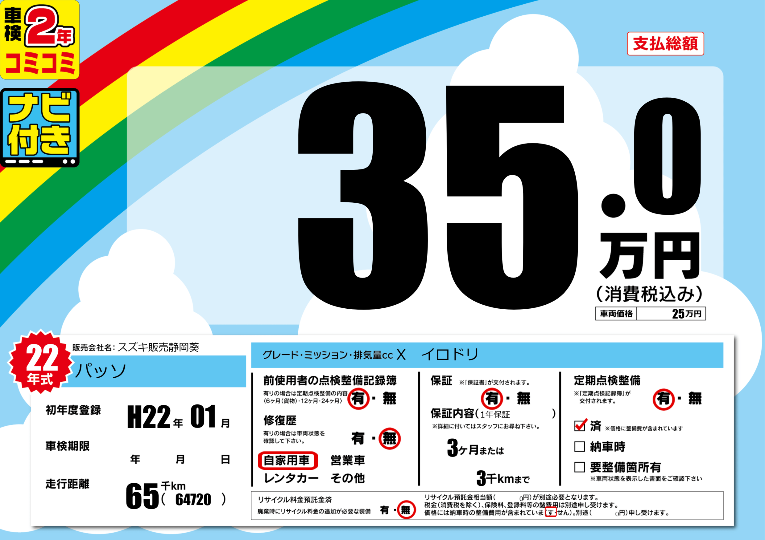 | 車名 | パッソ | グレード ミッション 排気量 |