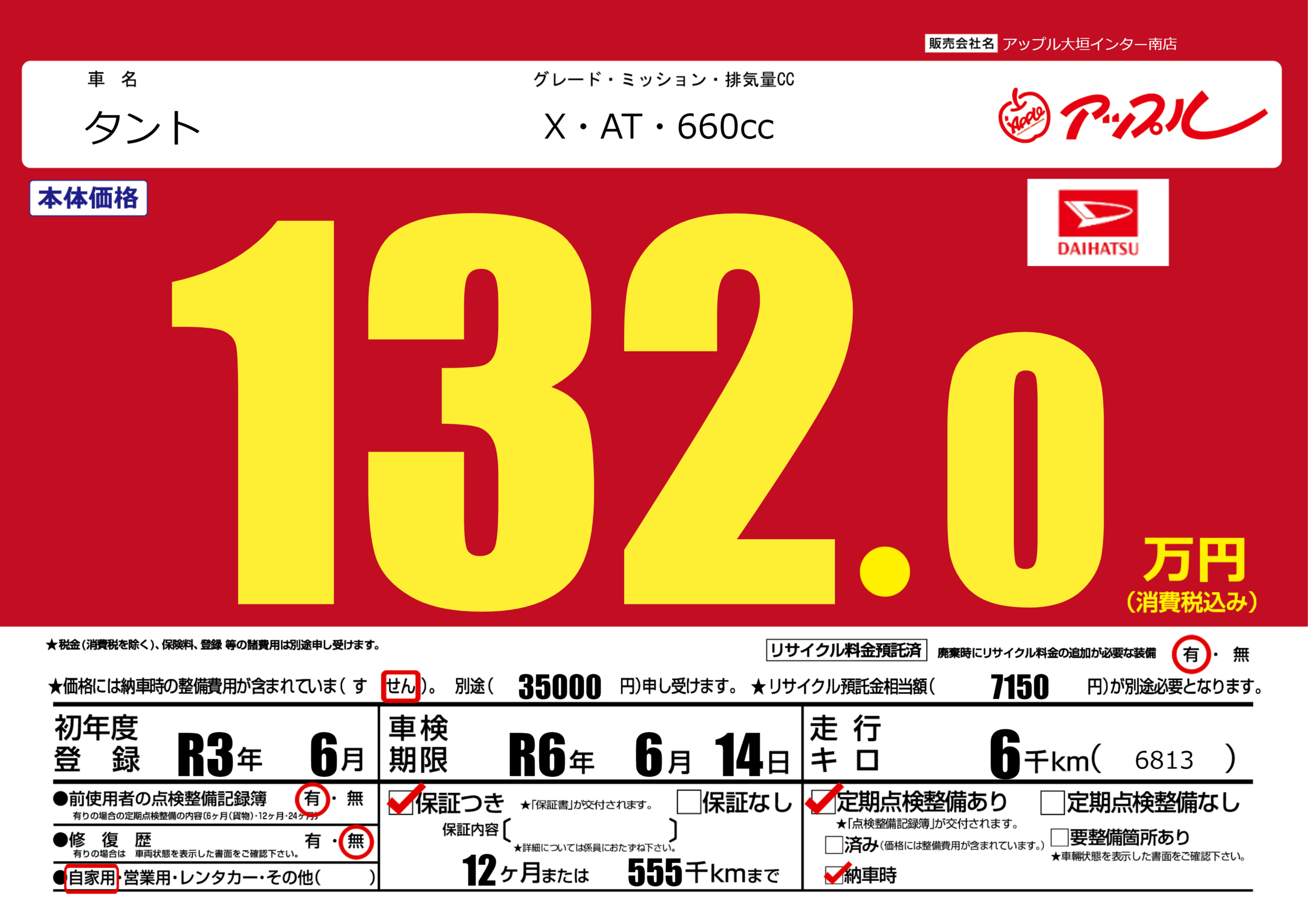 | 走行キロ | 0.6万km | 初年度登録 | R3年6月 |
