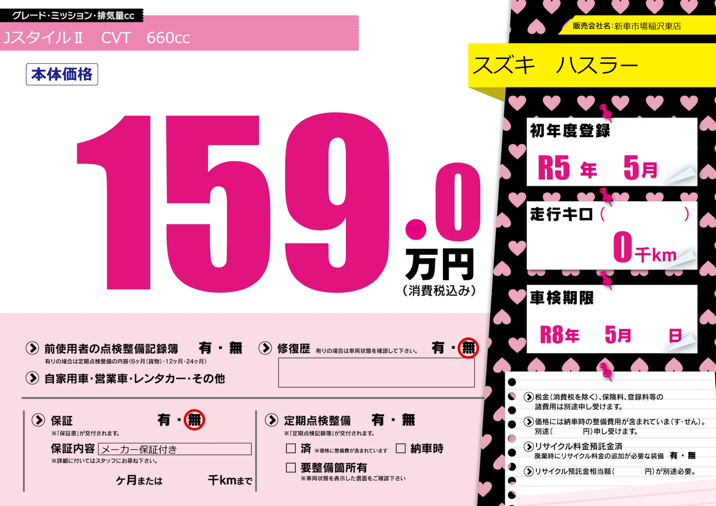 なし | 車検制限 | R8年5月---月 |