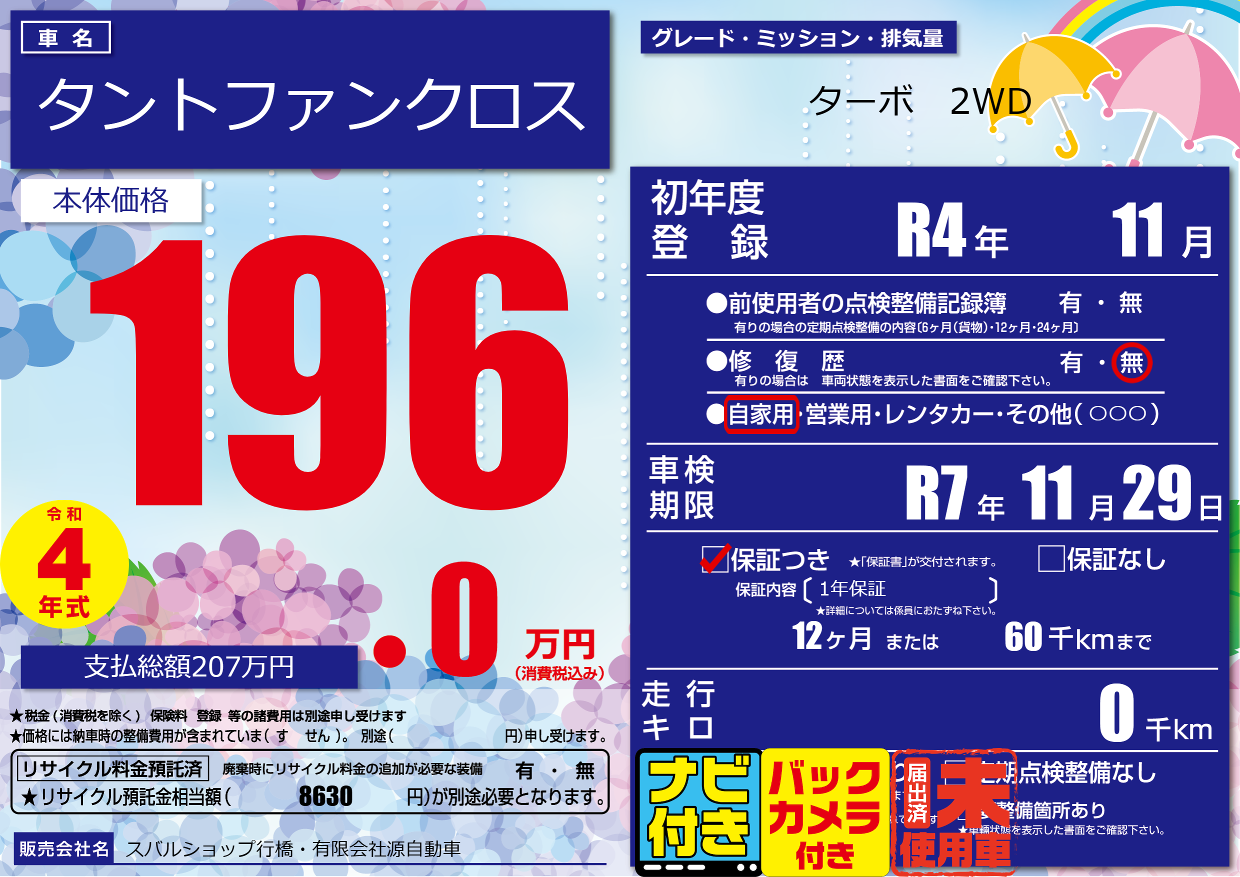 なし | 車検制限 | R7年11月29月 |