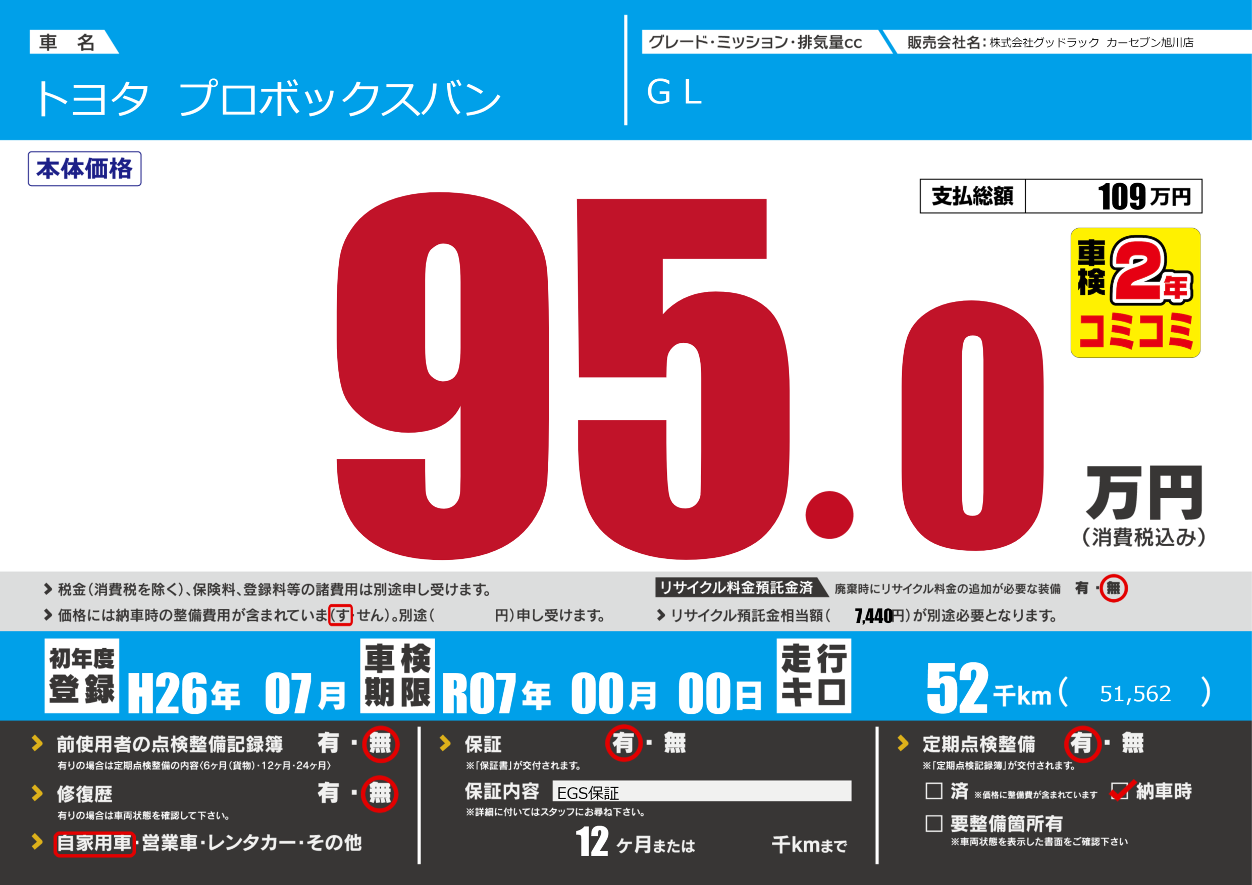 | 車検制限 | R07年 00月 00日 | ||