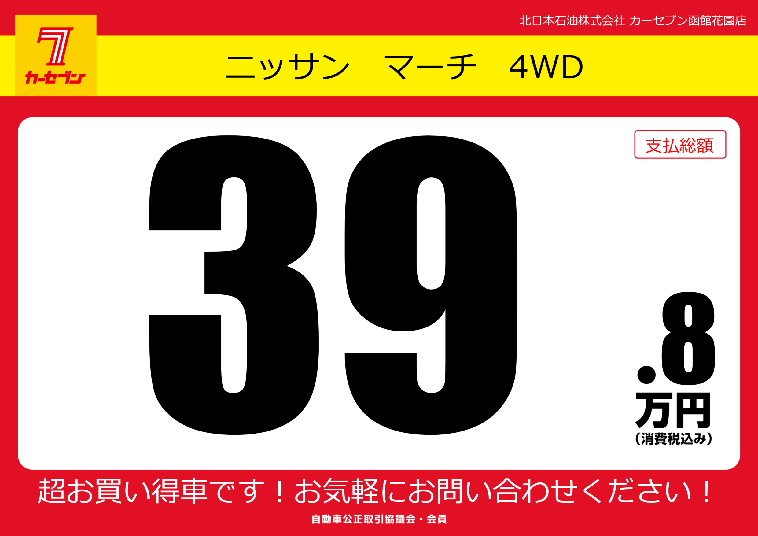 | 車名 | ニッサン マーチ 4WD | グレード ミッション 排気量 |