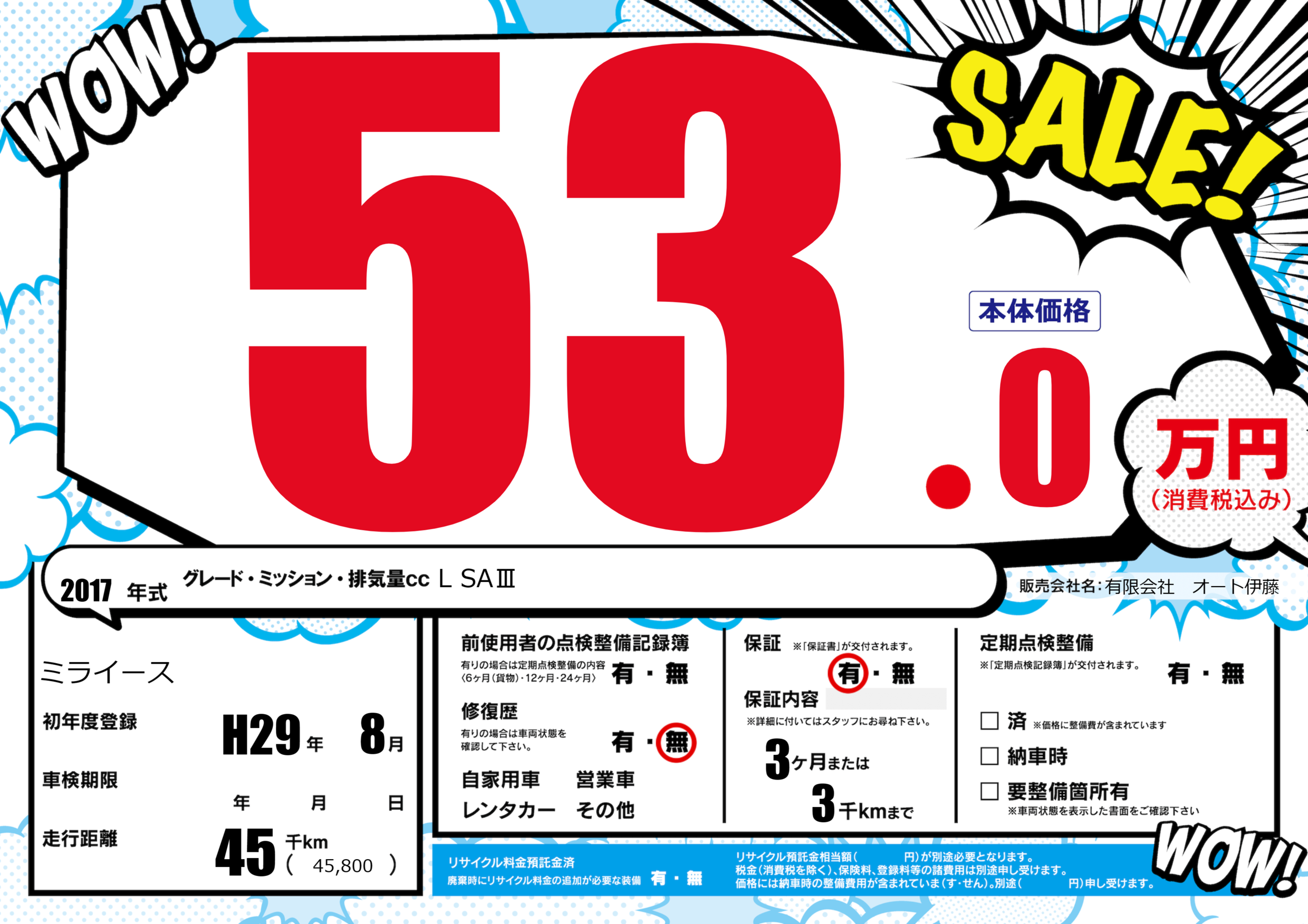 保証付き 保証内容(---) 3ヶ月または(3)千kmまで |