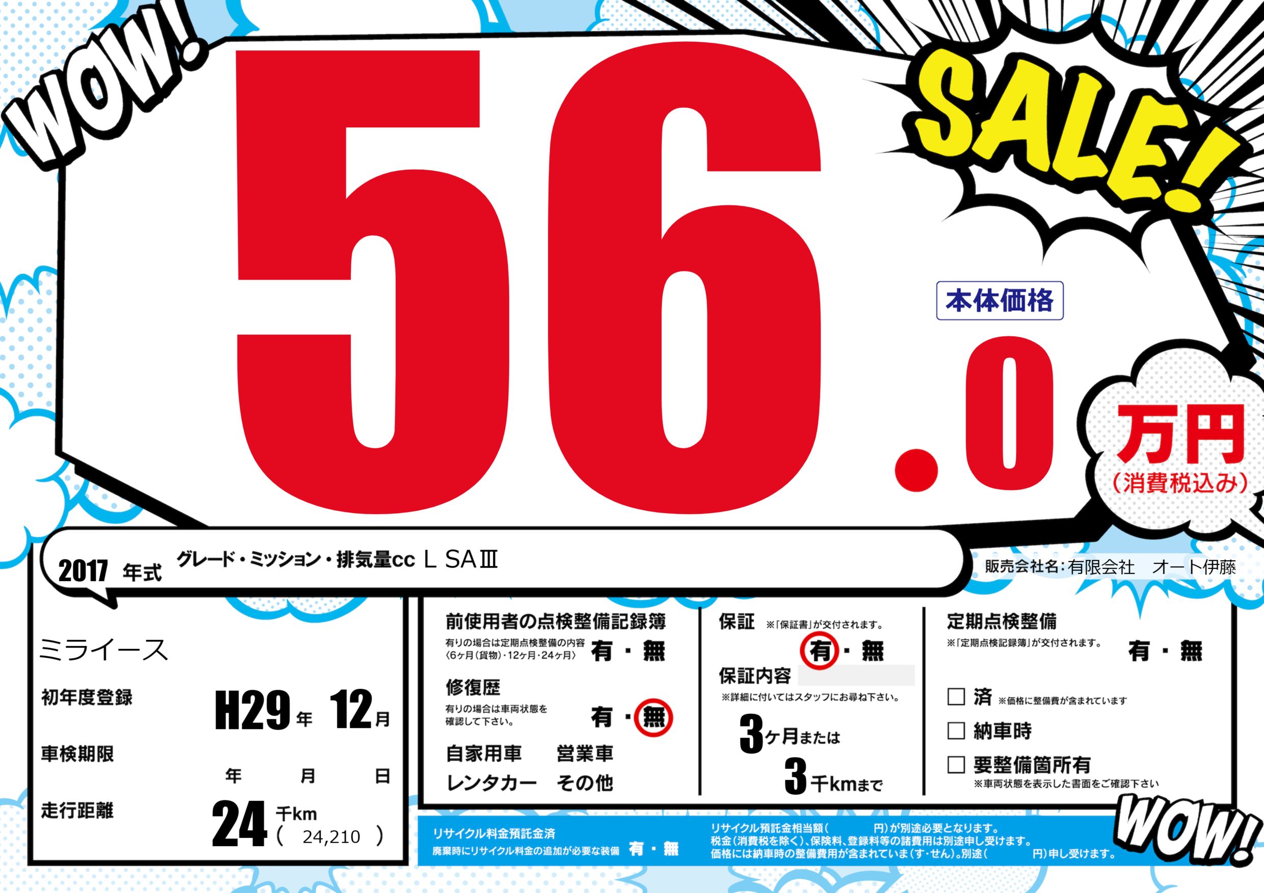 | 車名 | ミライース | グレード ミッション 排気量 |