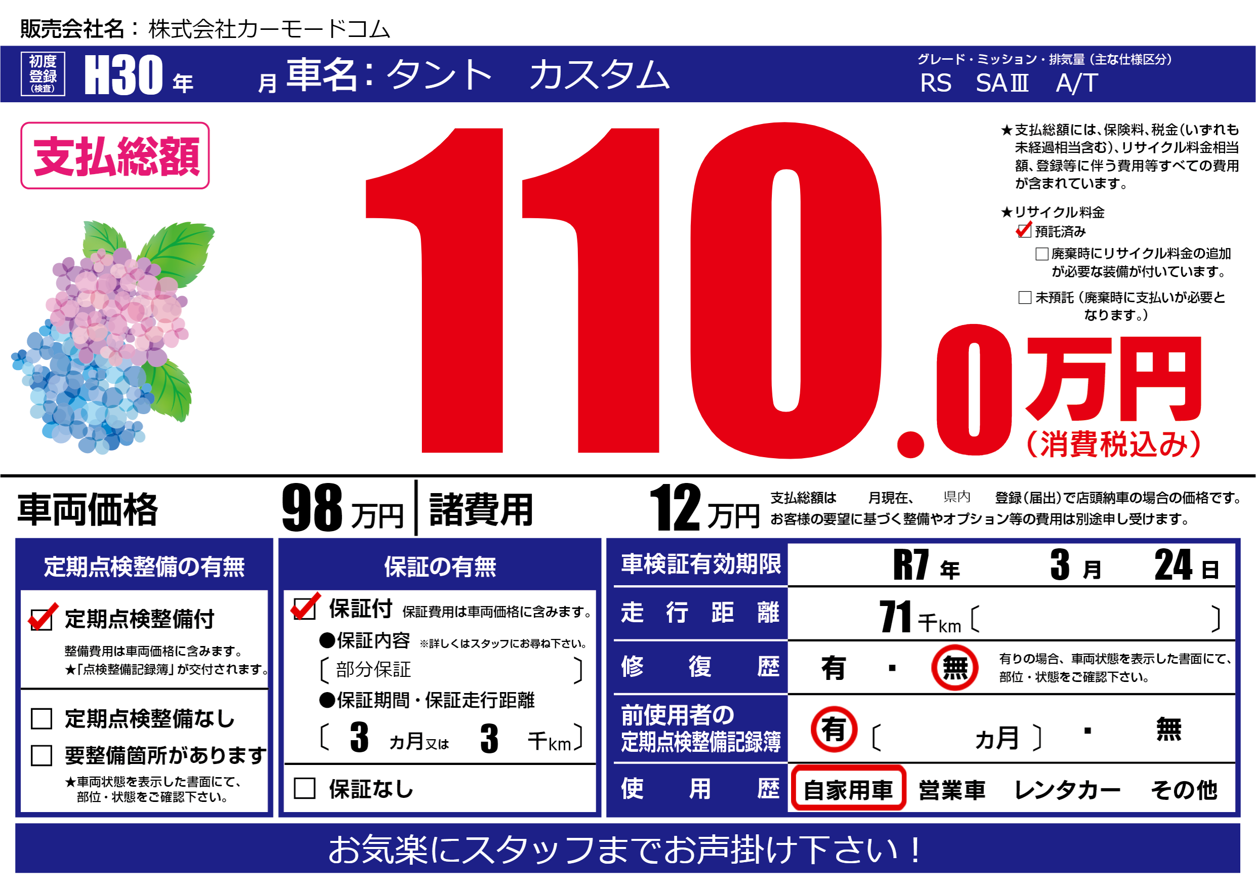 | 車検制限 | R7年 3月 24日 | ||