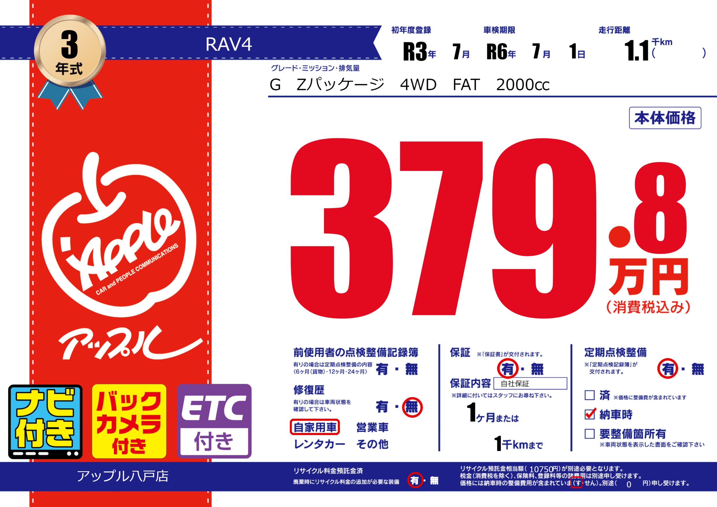 | 車名 | RAV4 | グレード ミッション 排気量 |
