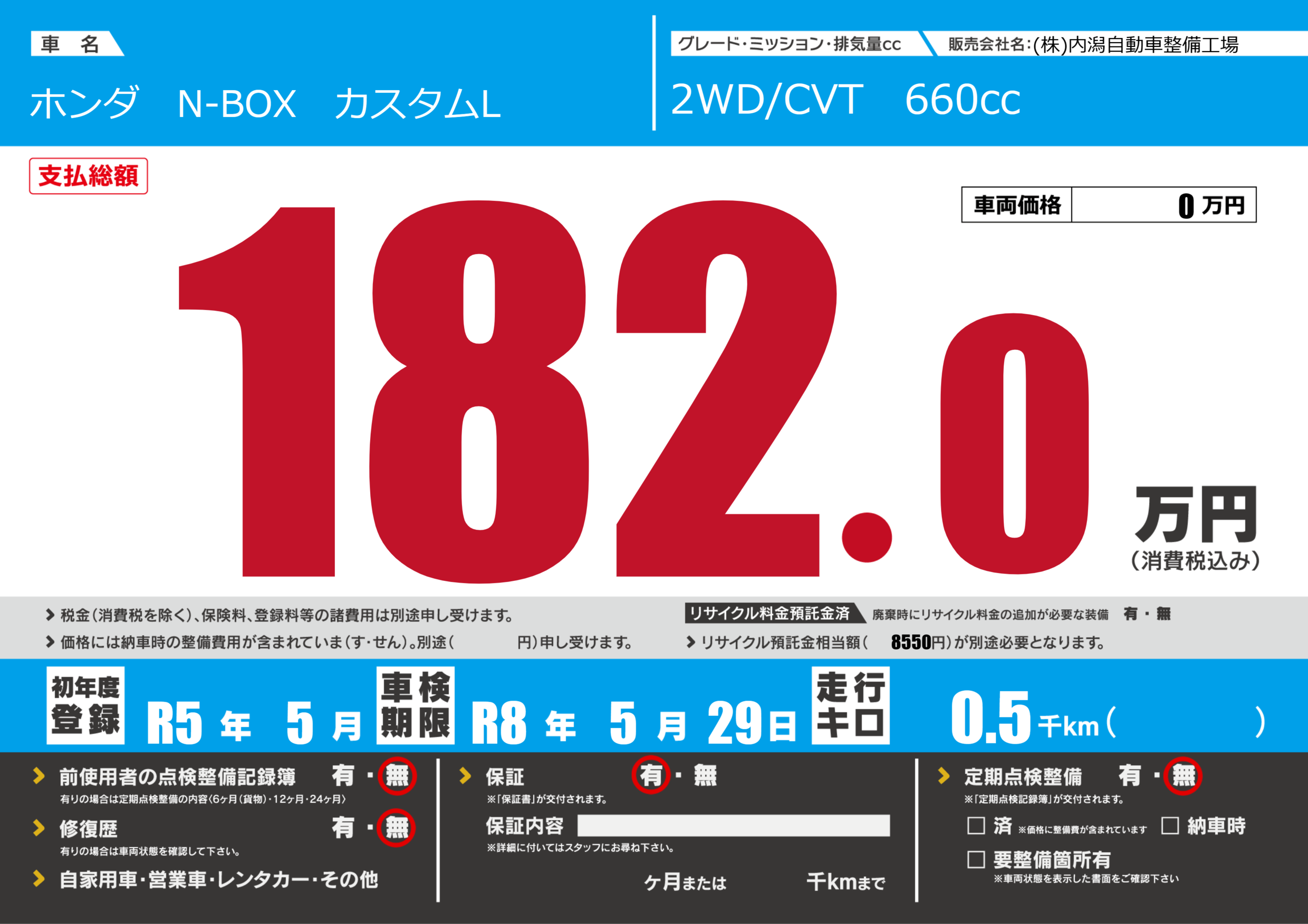 なし | 車検制限 | R8年5月29月 |