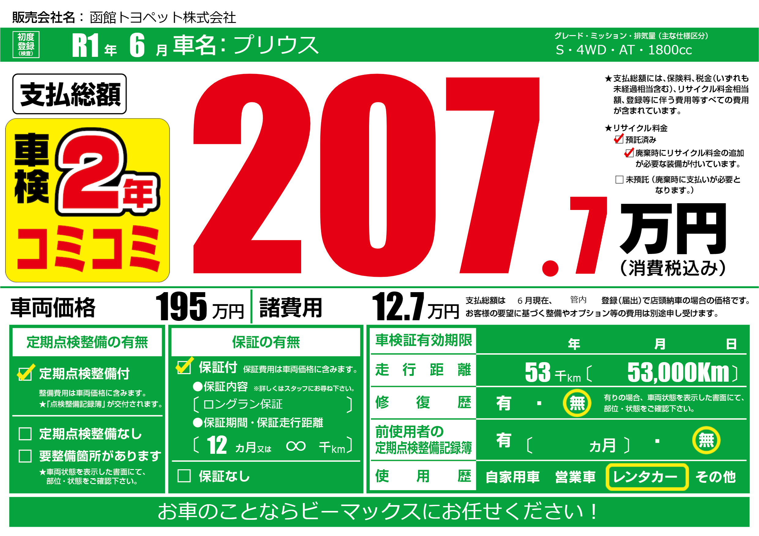 | 定期点検整備 | 定期点検整備あり | ||