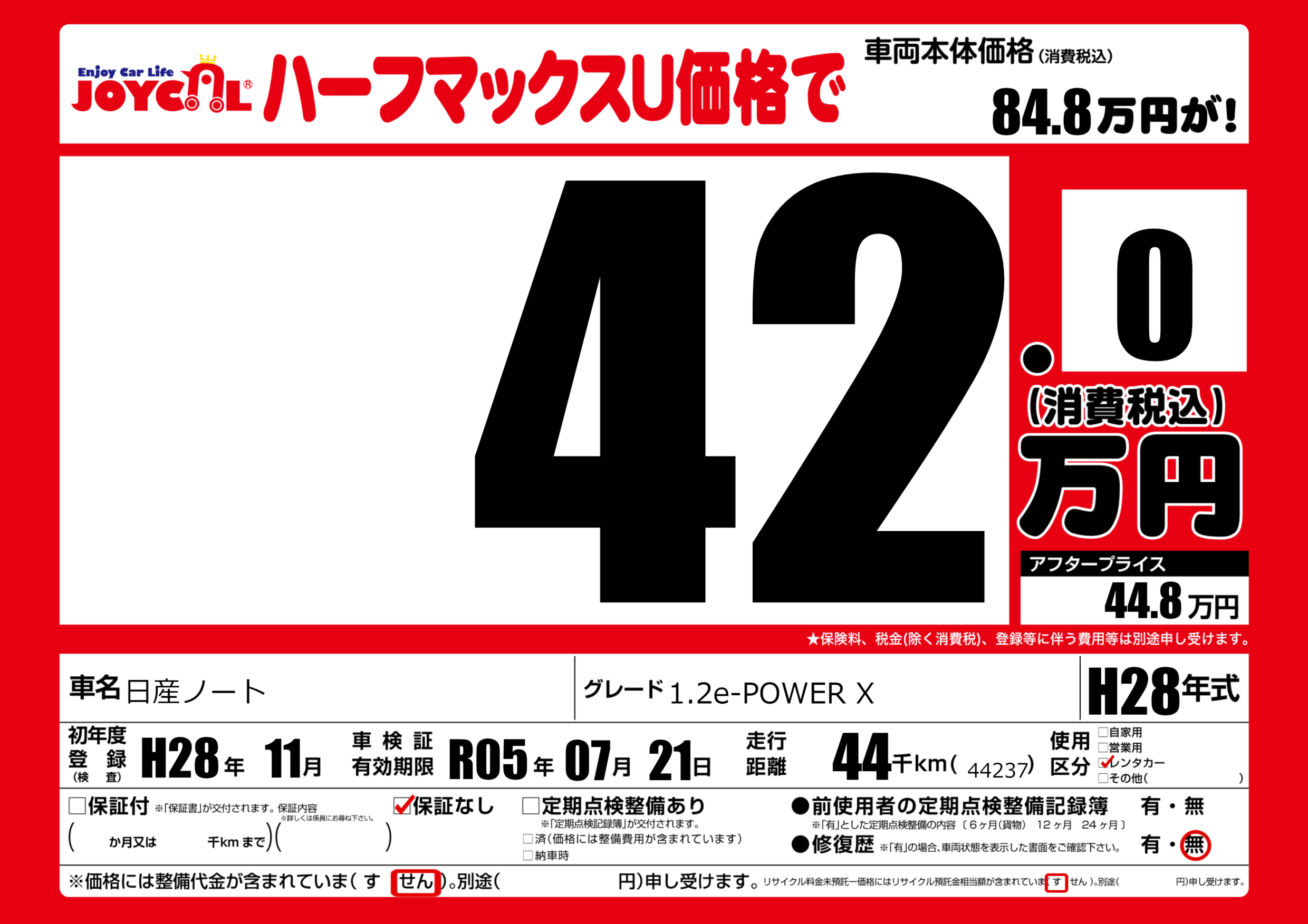 | 走行キロ | 4.4万km | 初年度登録 | H28年11月 |