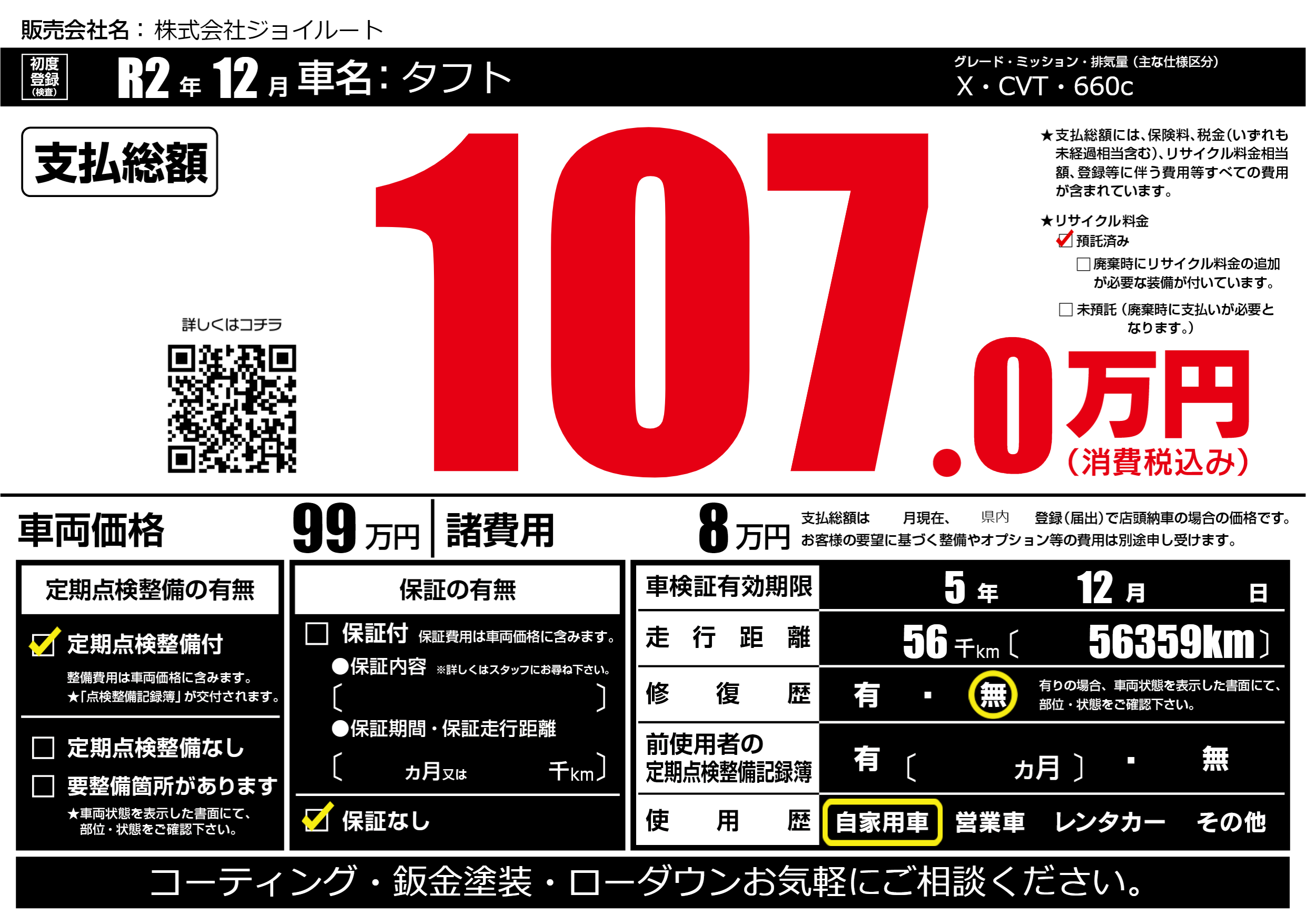 | 走行キロ | 5.6万km | 初年度登録 | R2年12月 |