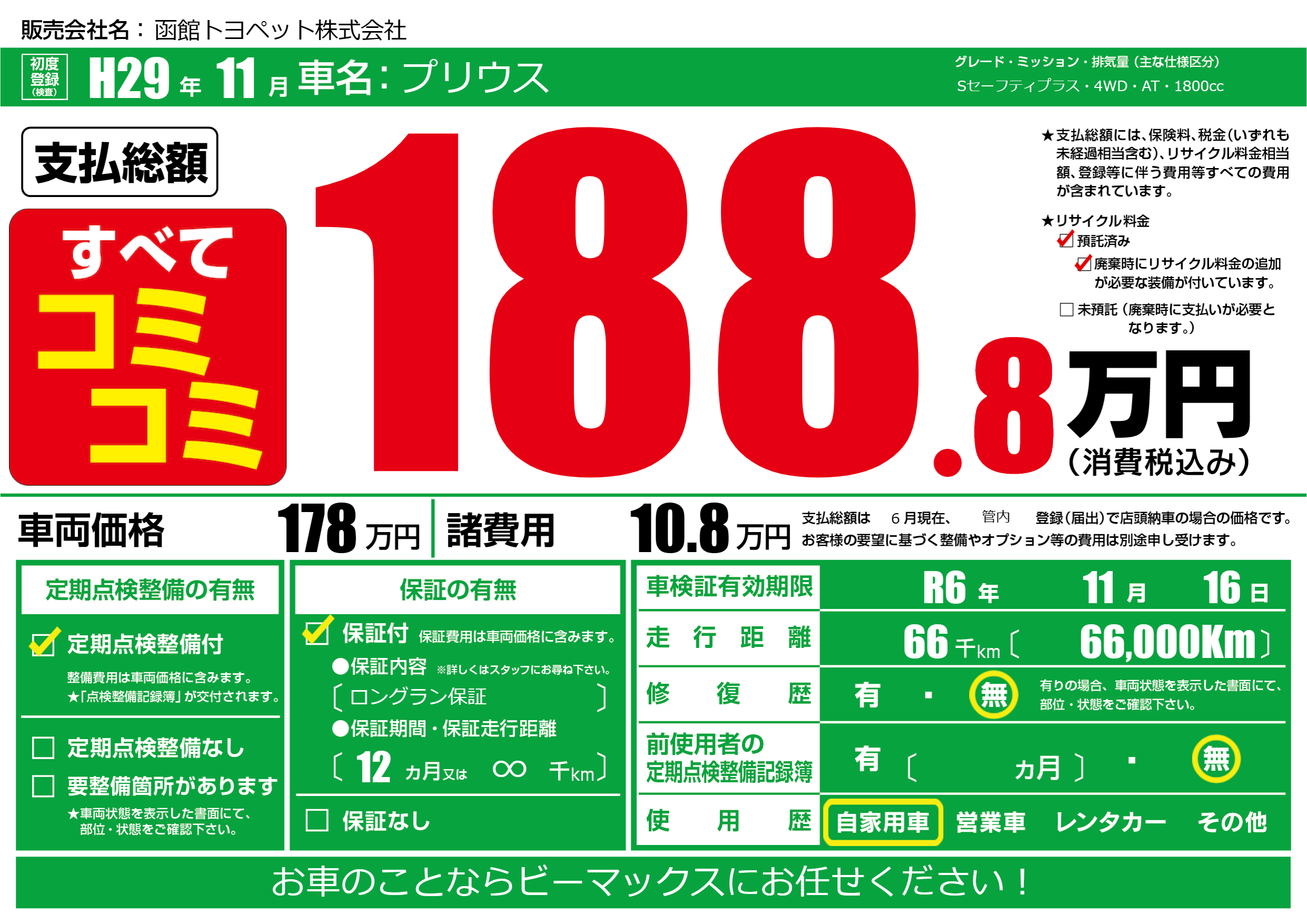 | 走行キロ | 6.6万km | 初年度登録 | H29年11月 |