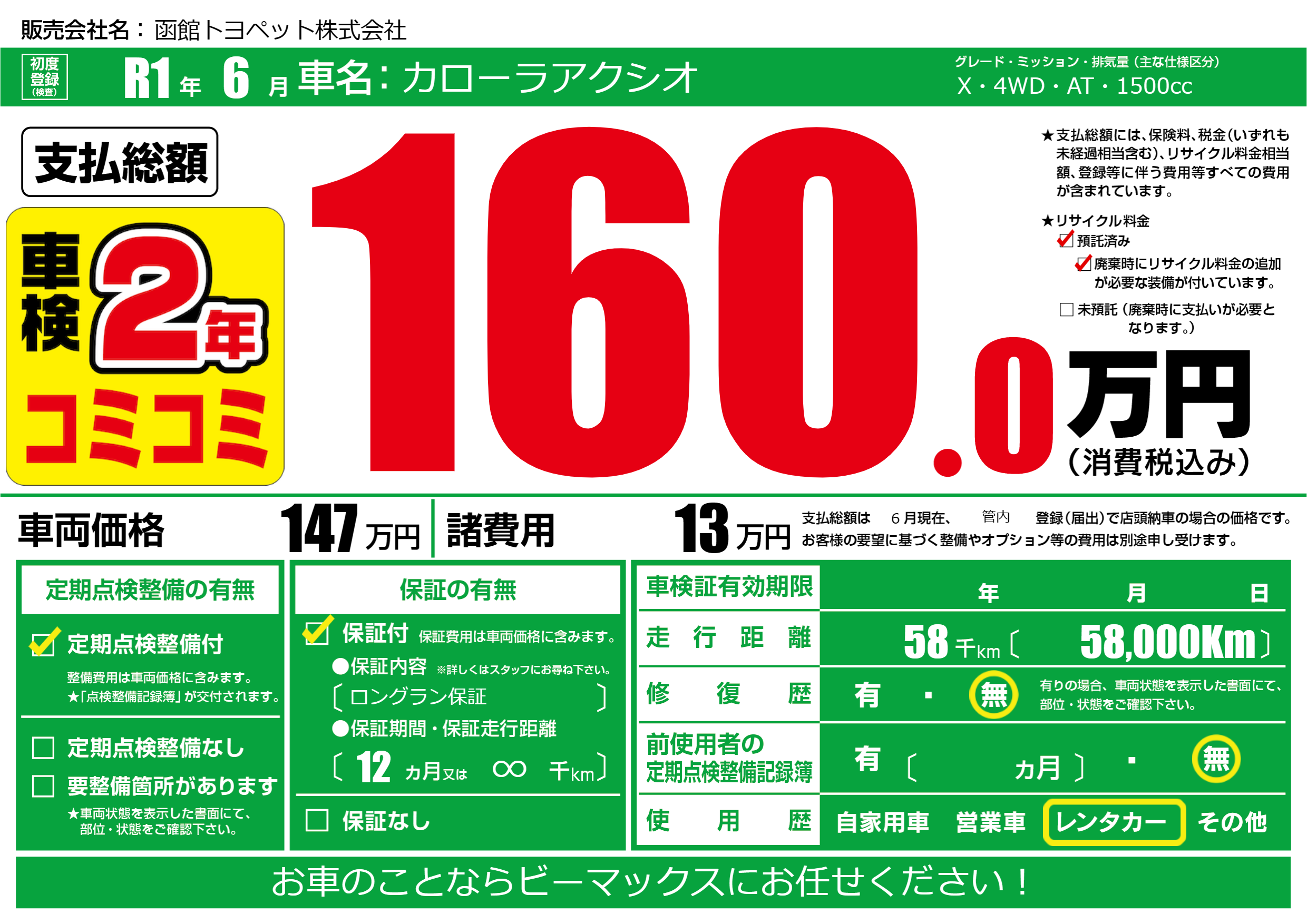 | 定期点検整備 | 定期点検整備あり | ||