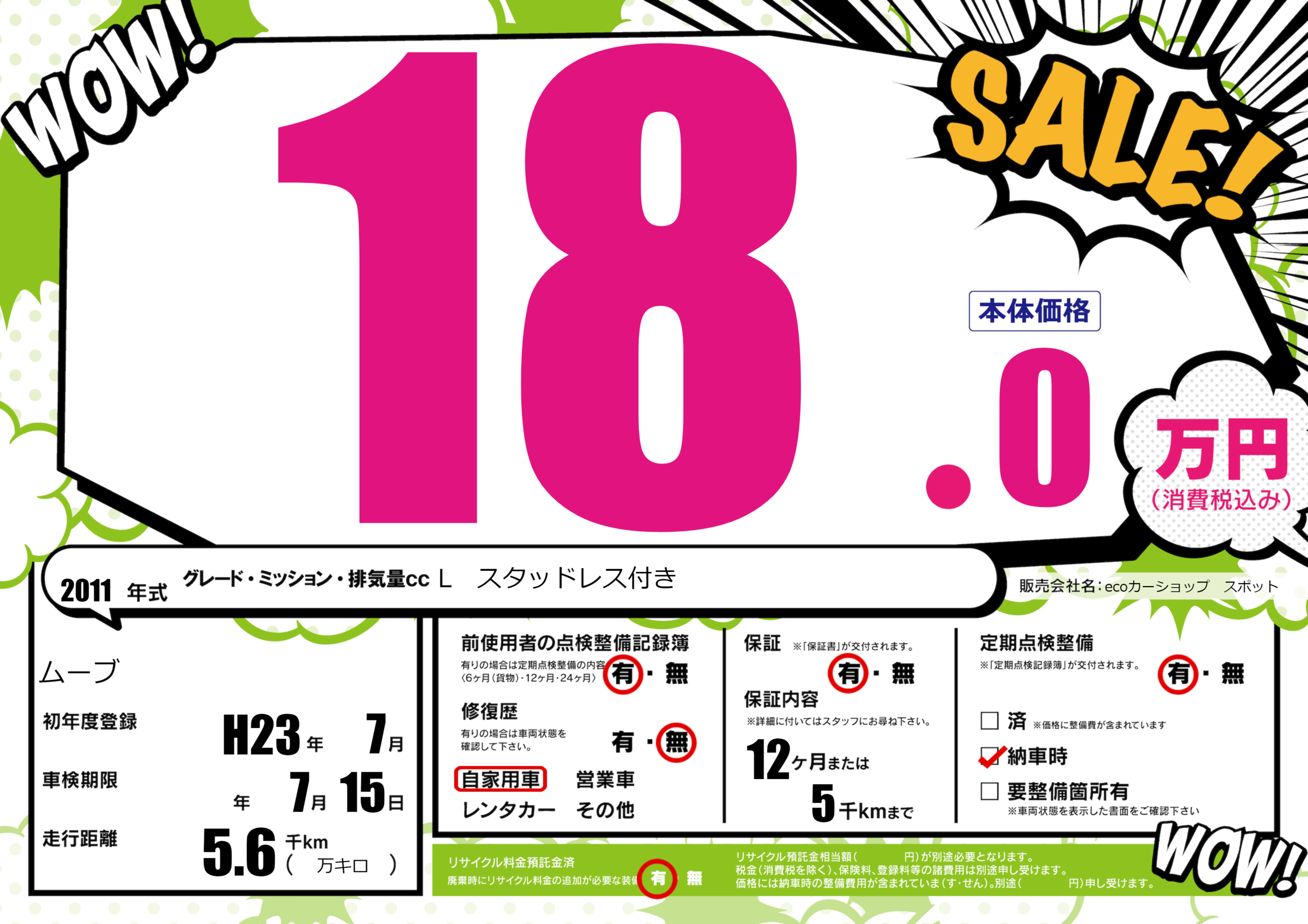 保証付き 保証内容(---) 12ヶ月または(5)千kmまで |