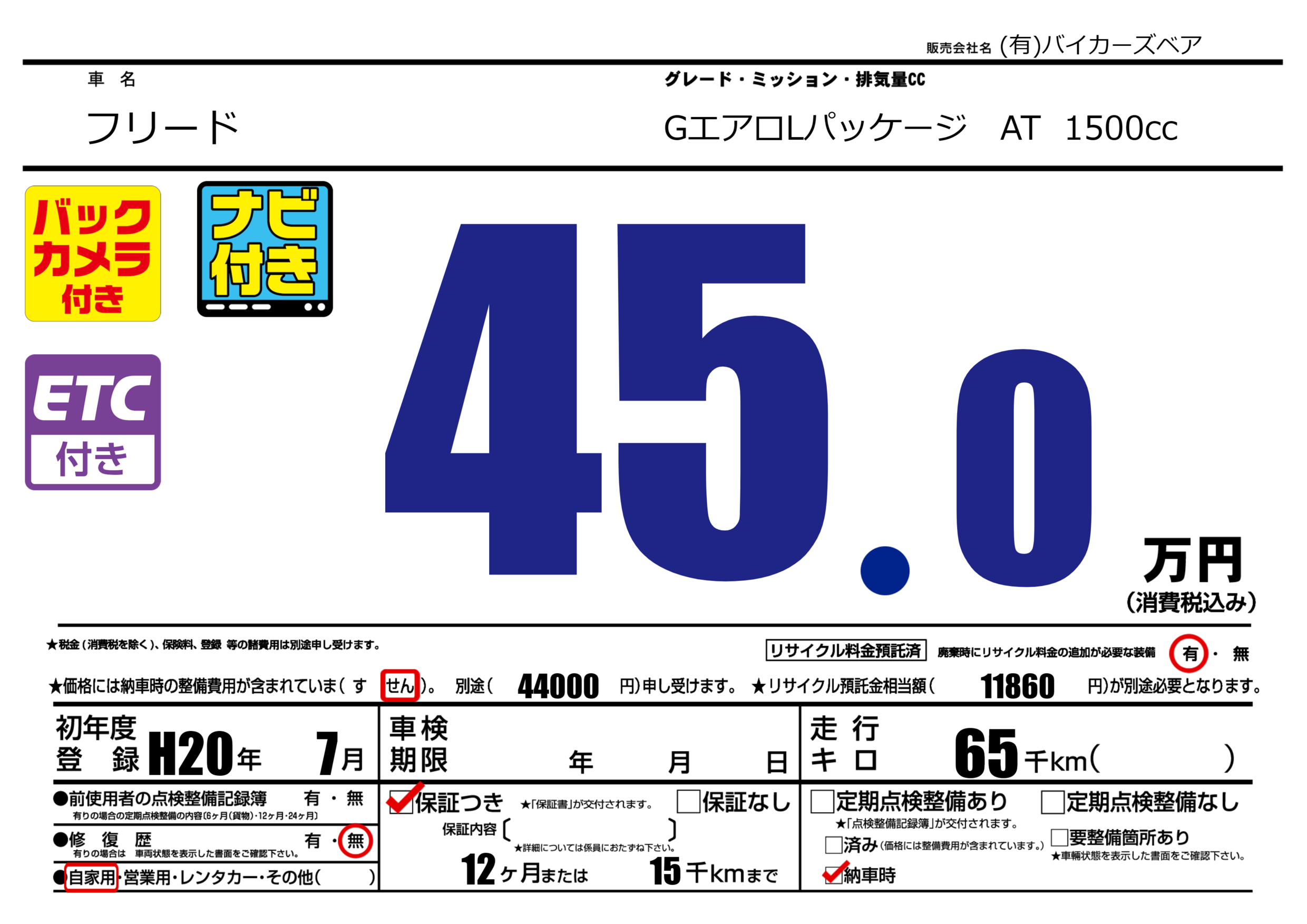 定期点検整備 | 納車時あり |