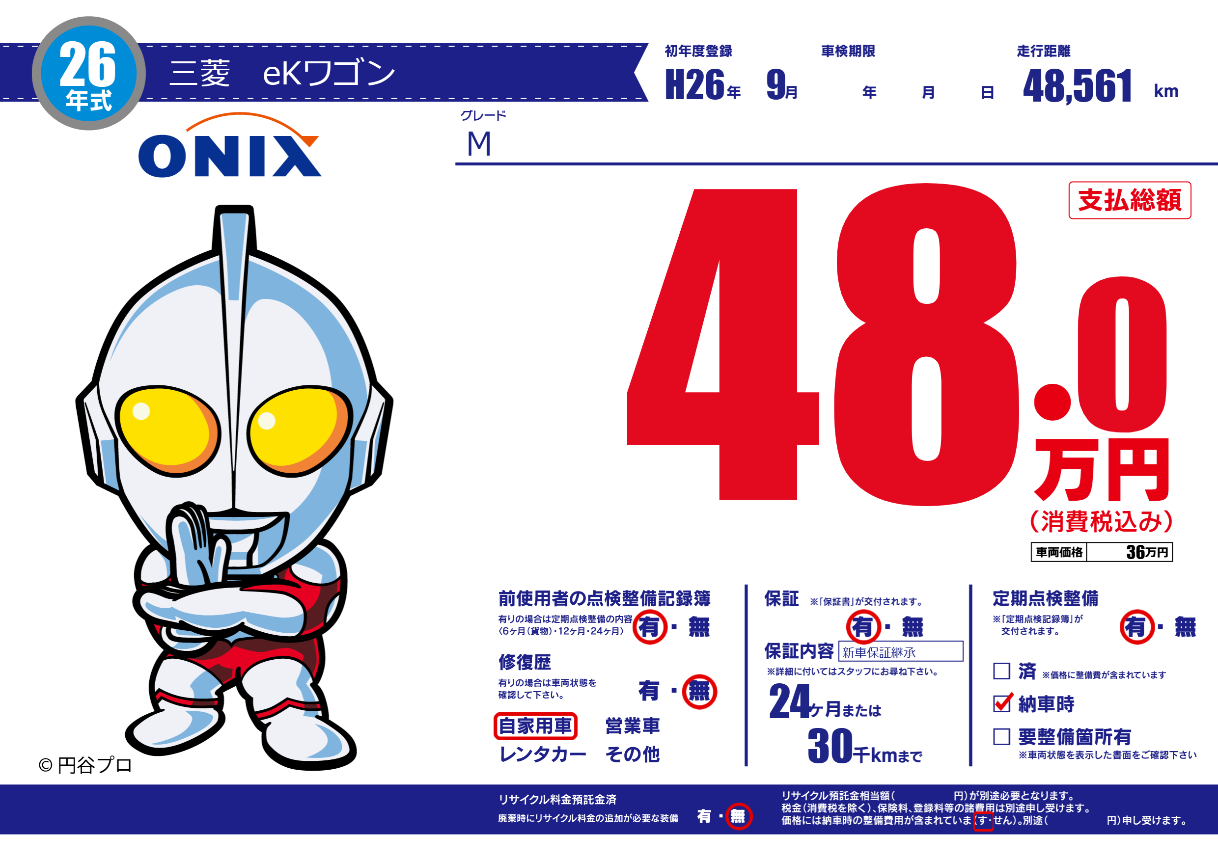 | 走行キロ | 4.8万km | 初年度登録 | H26年9月 |