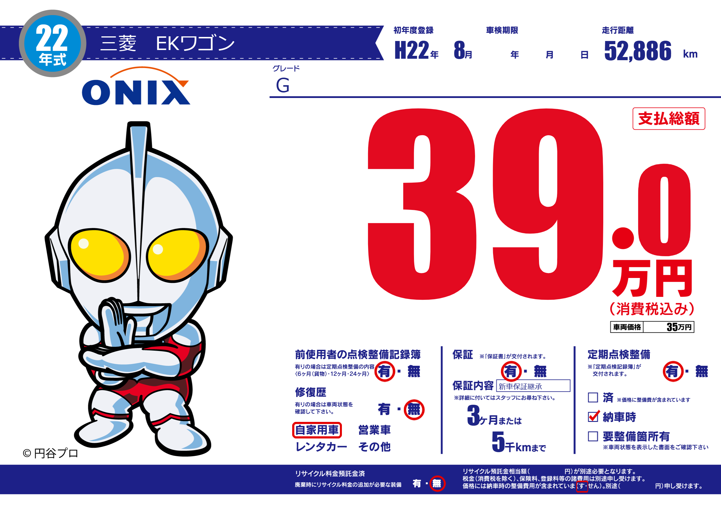 | 車名 | 三菱 EKワゴン | グレード ミッション 排気量 |
