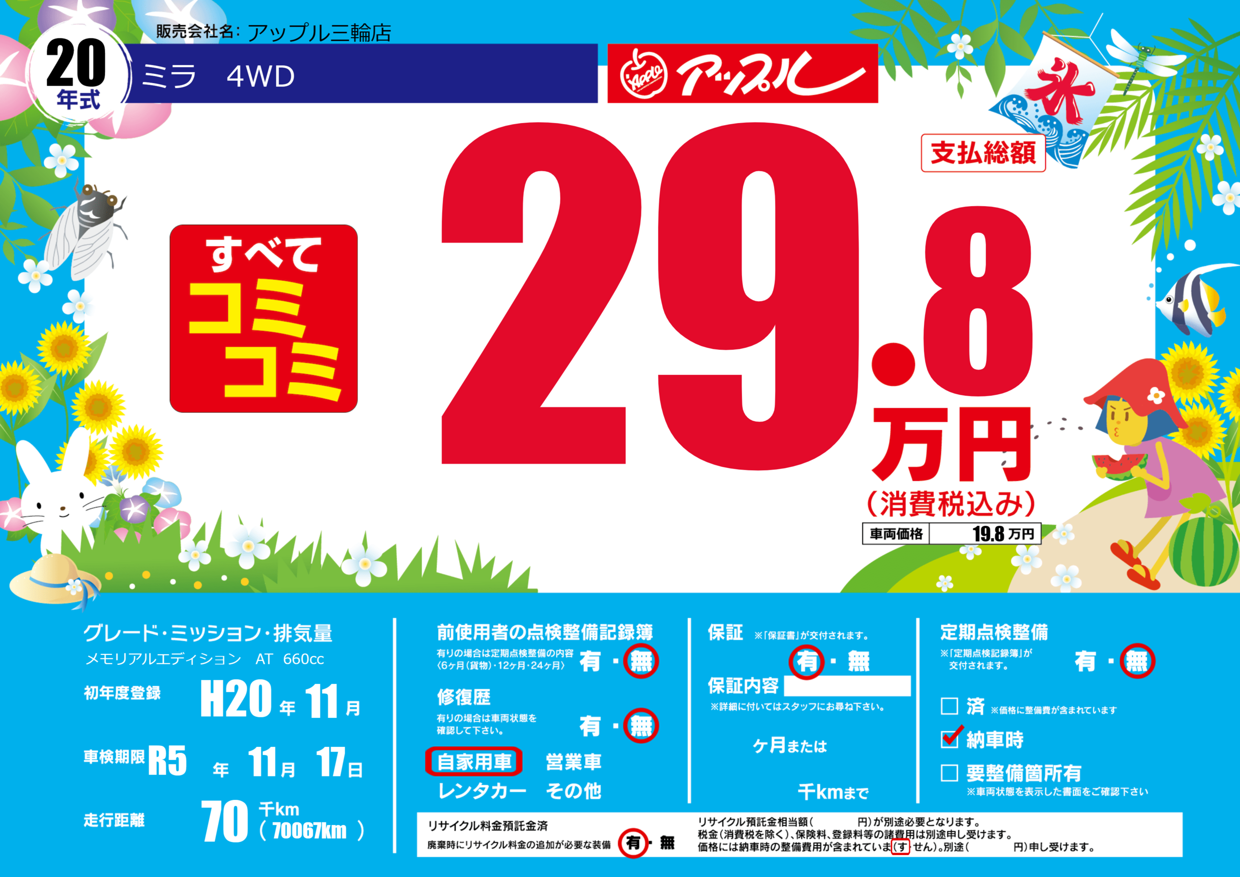 | 定期点検整備 | 定期点検整備なし 納車時あり | ||