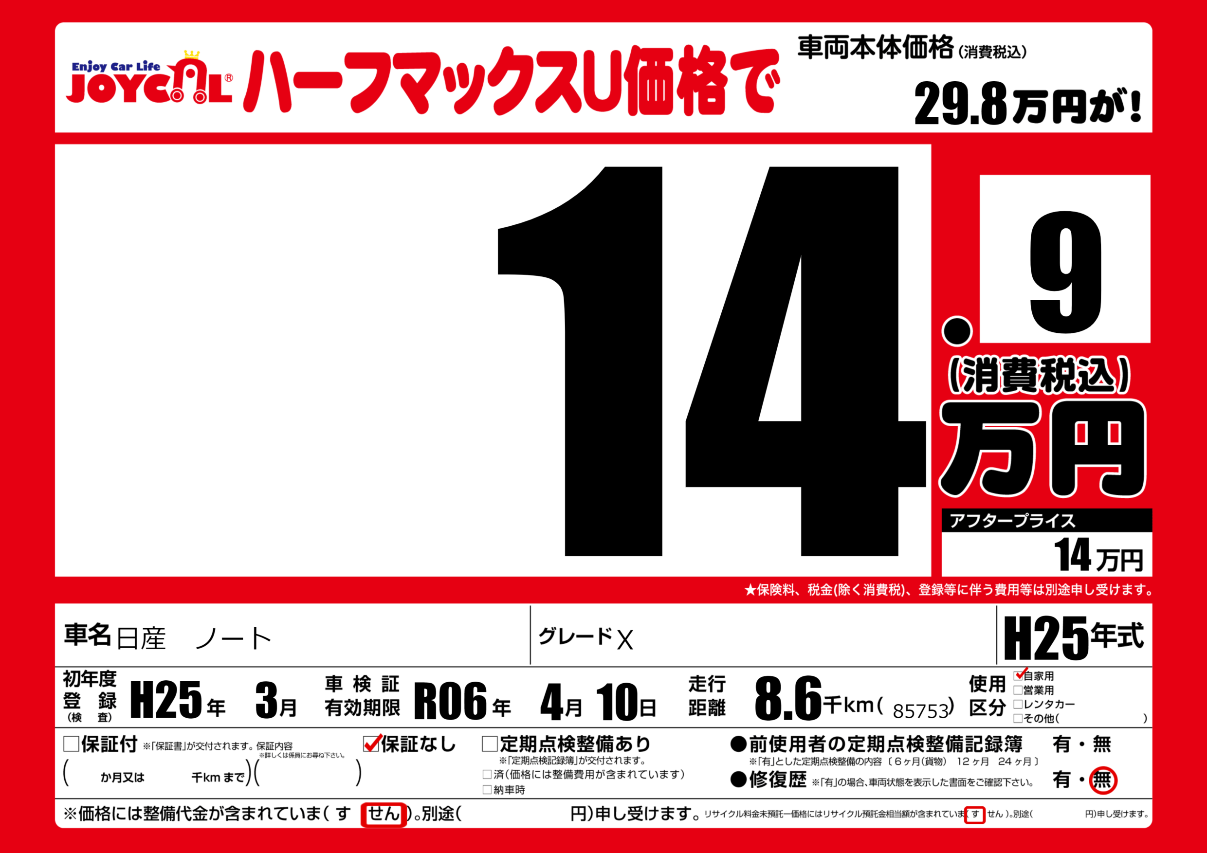 | 車名 | 日産 ノート | グレード ミッション 排気量 |