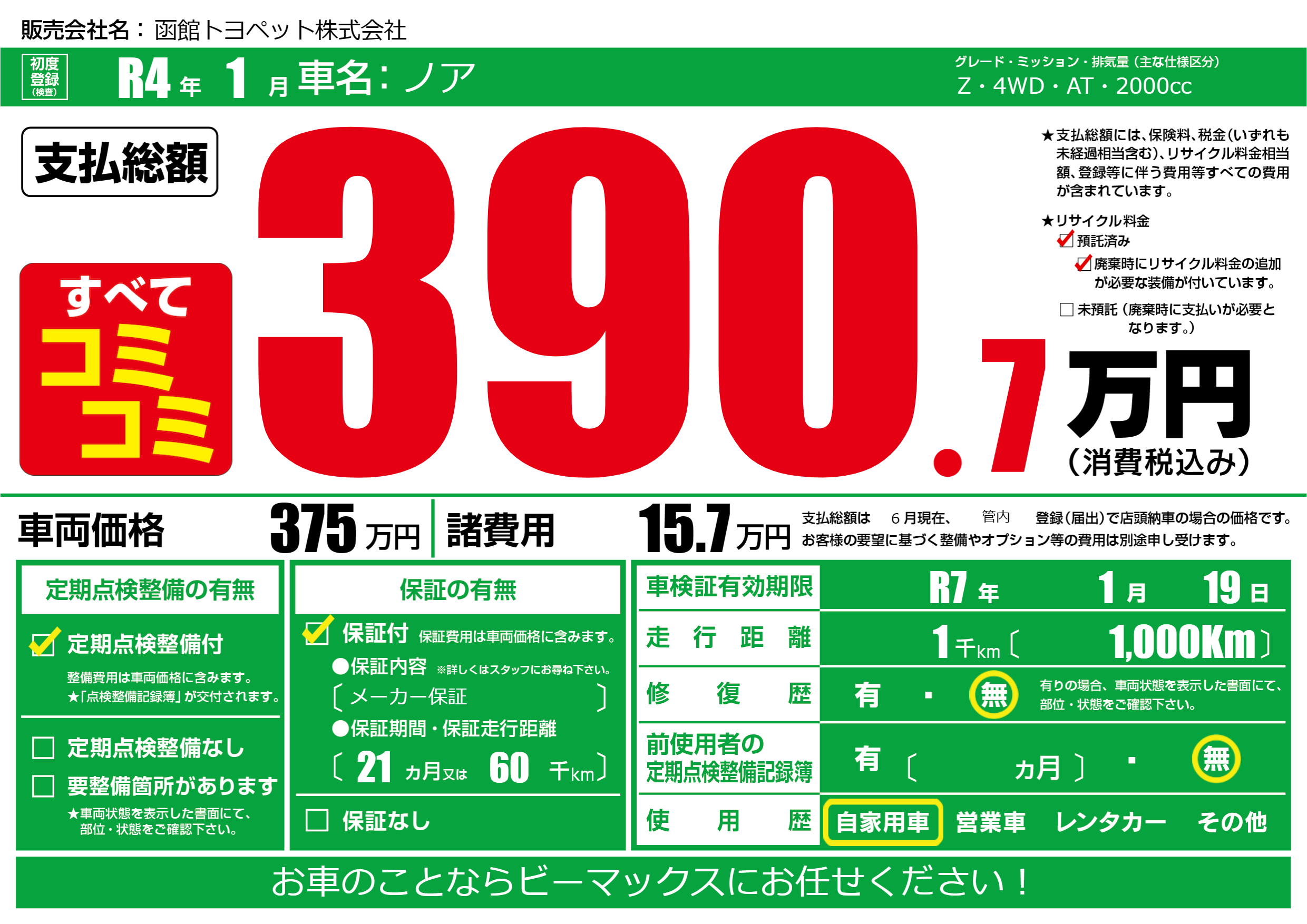 | 定期点検整備 | 定期点検整備あり | ||