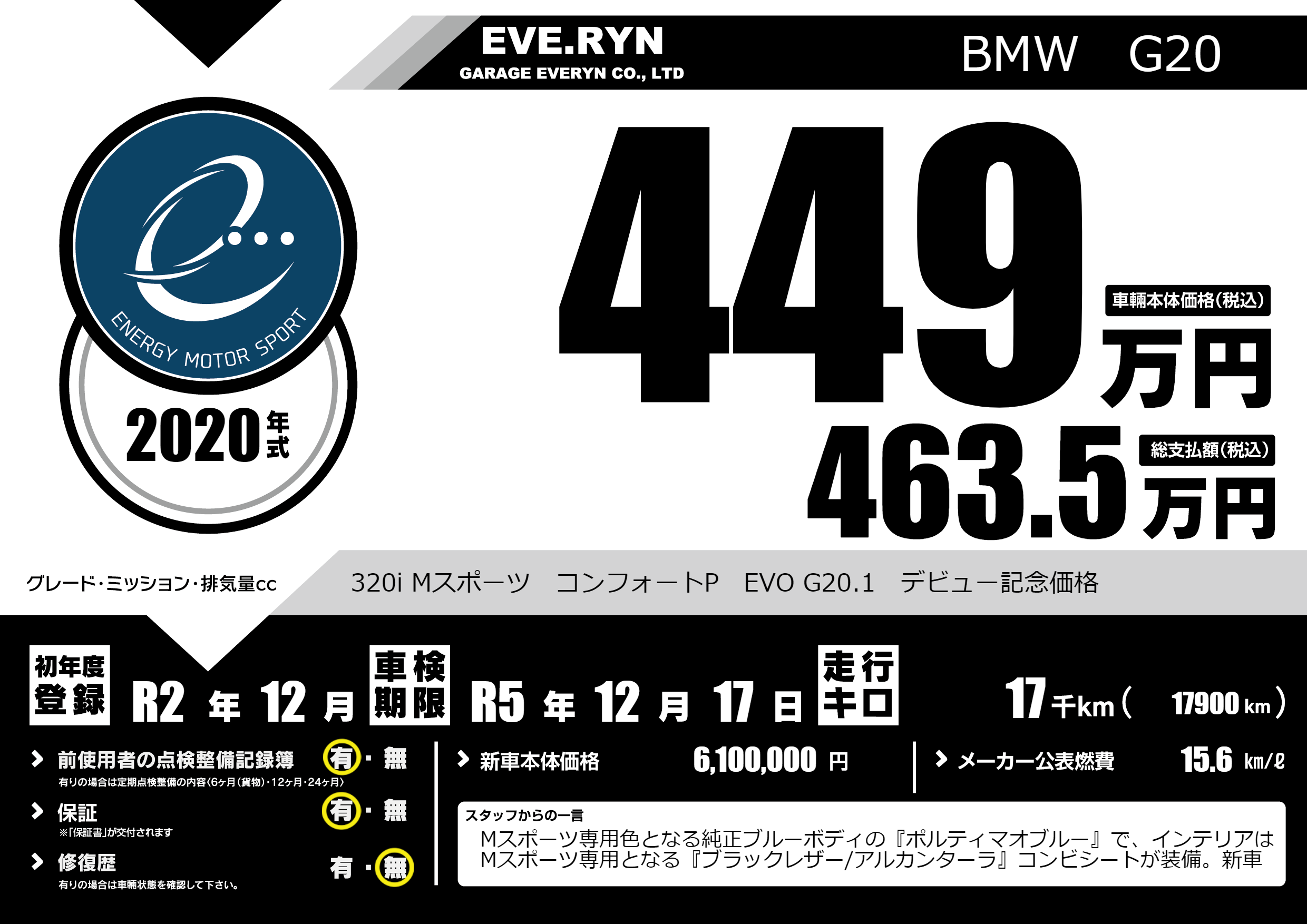 320i Mスポーツ コンフォートP EVO G20.1 デビュー記念価格 |