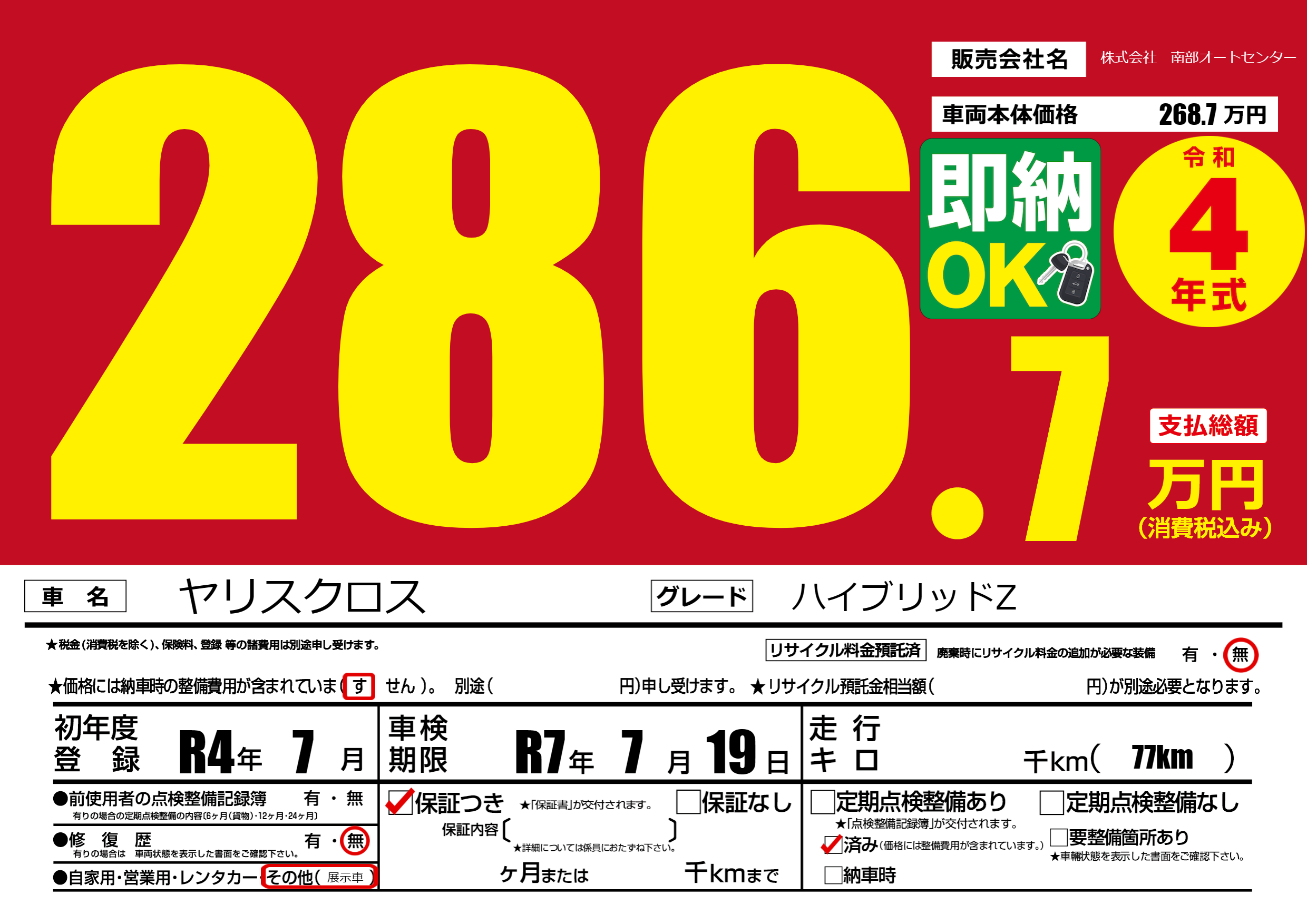 | 走行キロ | - | 初年度登録 | R4年7月 |