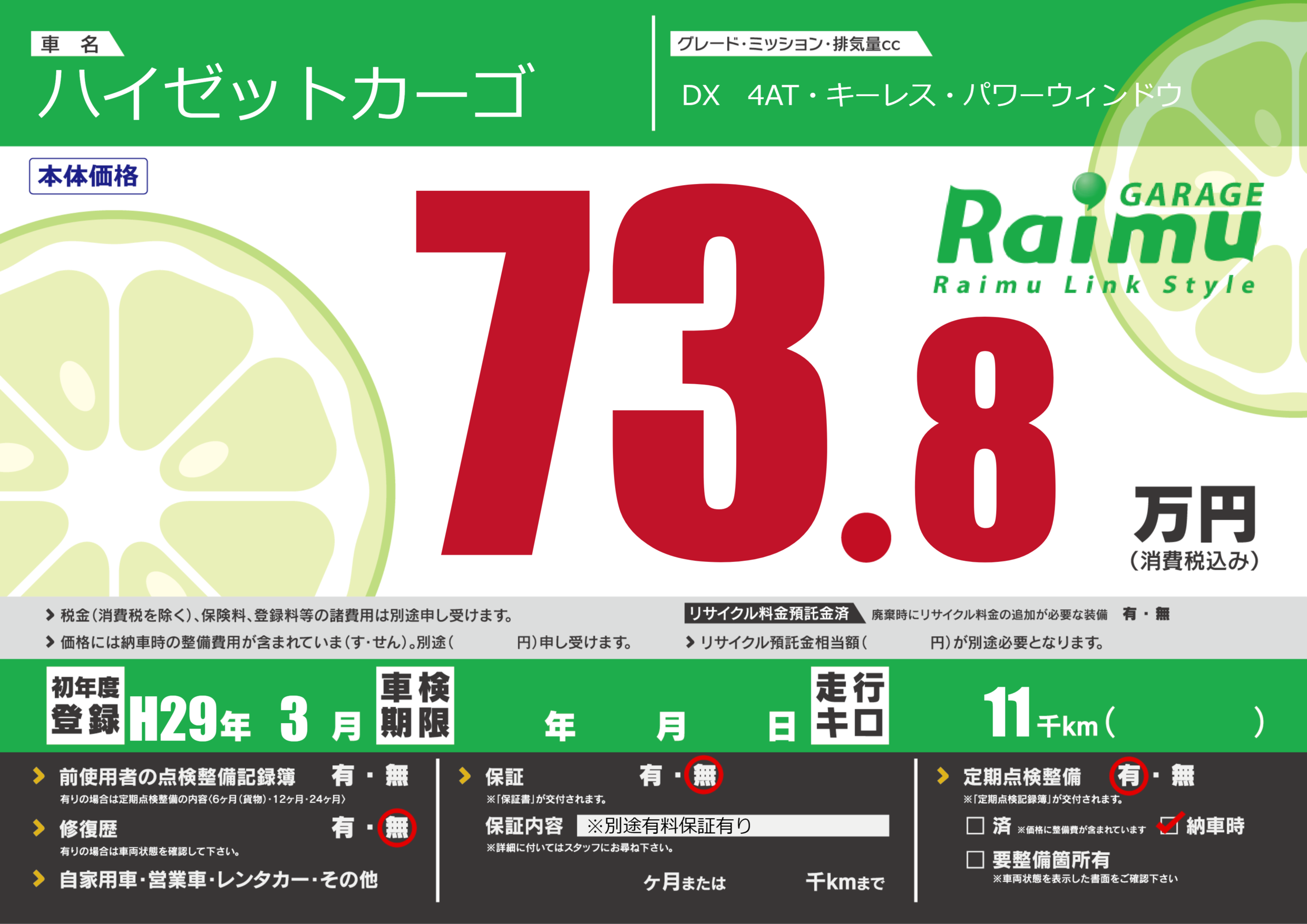 | 車名 | ハイゼットカーゴ | グレード ミッション 排気量 |