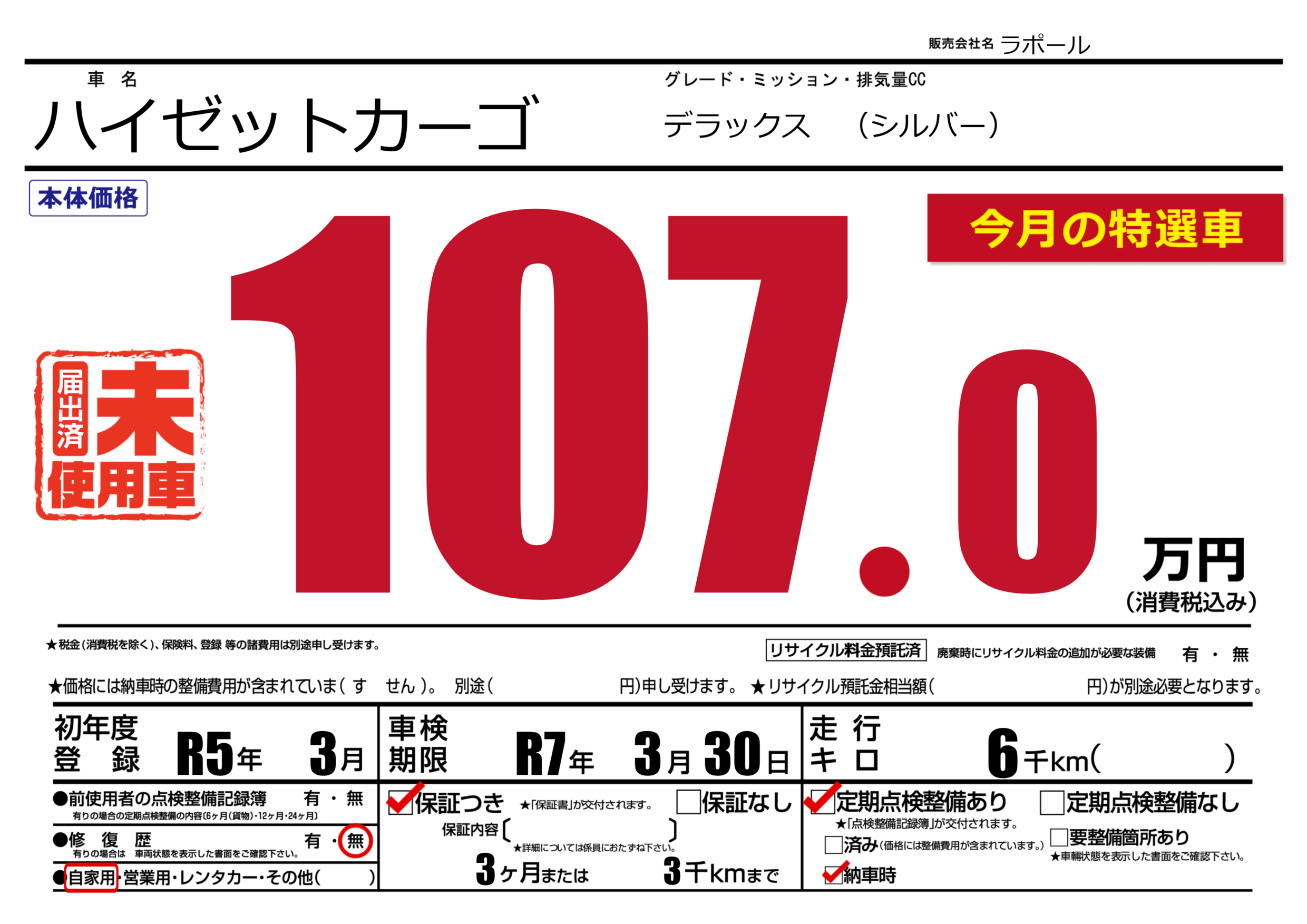 保証付き 保証内容(---) 3ヶ月または(3)千kmまで |