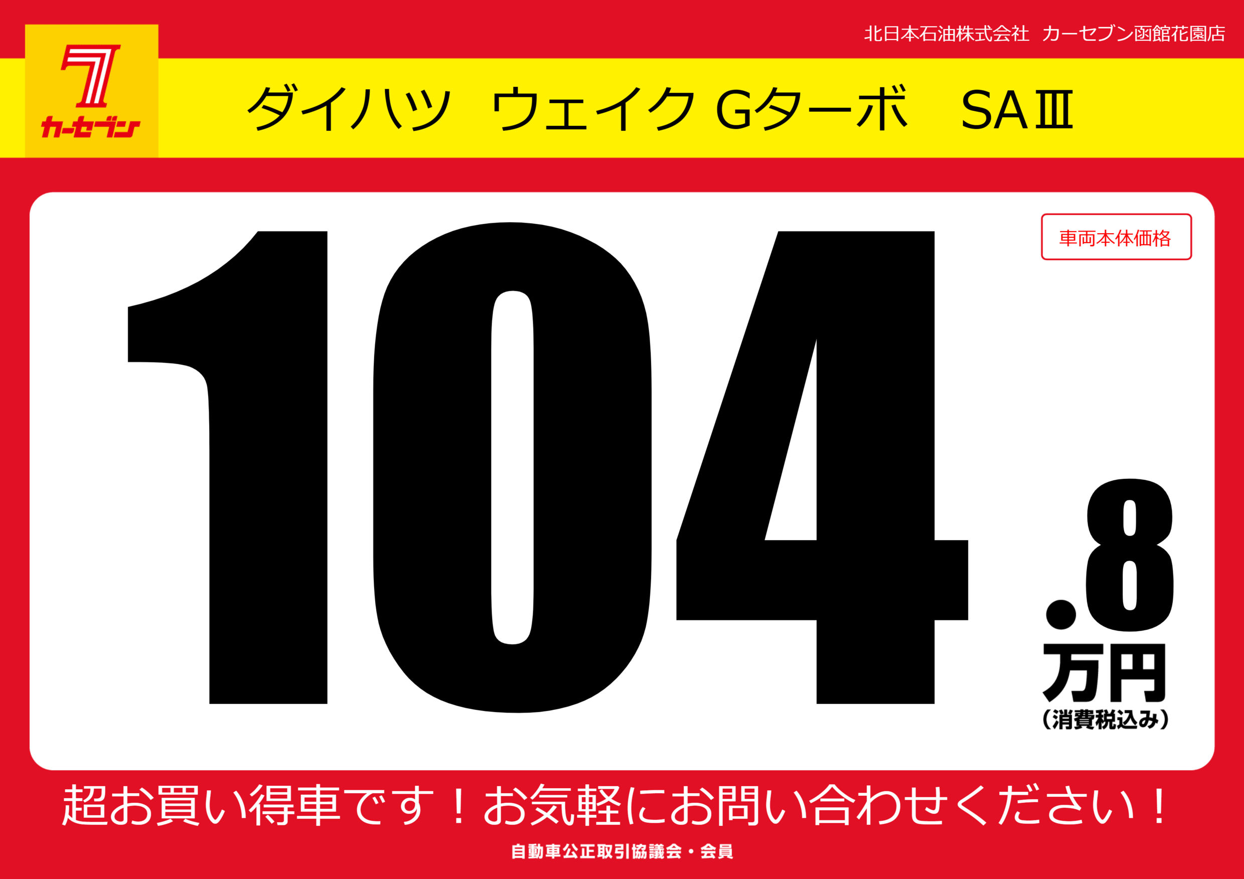 | 車名 | ダイハツ ウェイク Gターボ SAⅢ | グレード ミッション 排気量 |