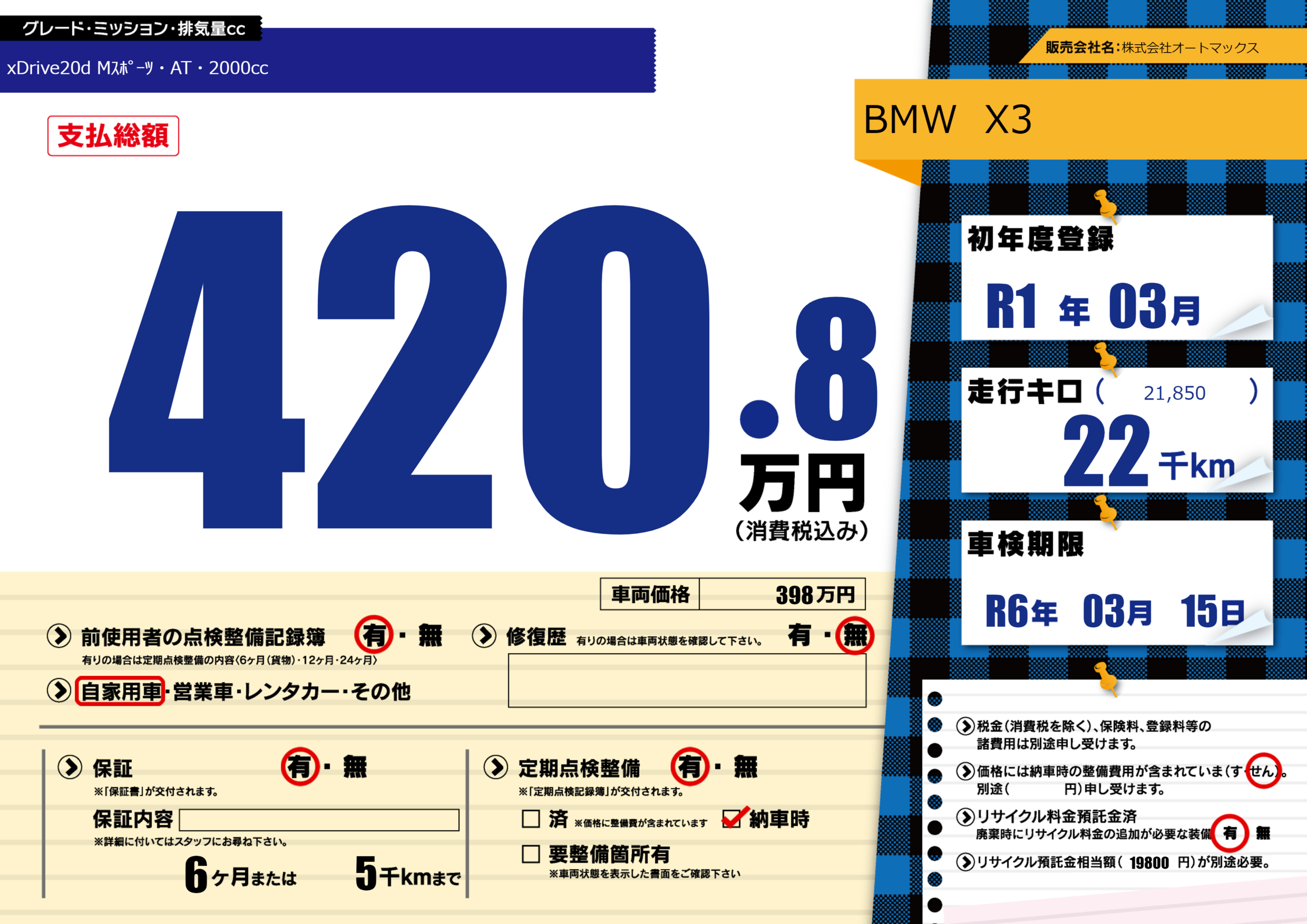 あり | 車検制限 | R6年03月15月 |