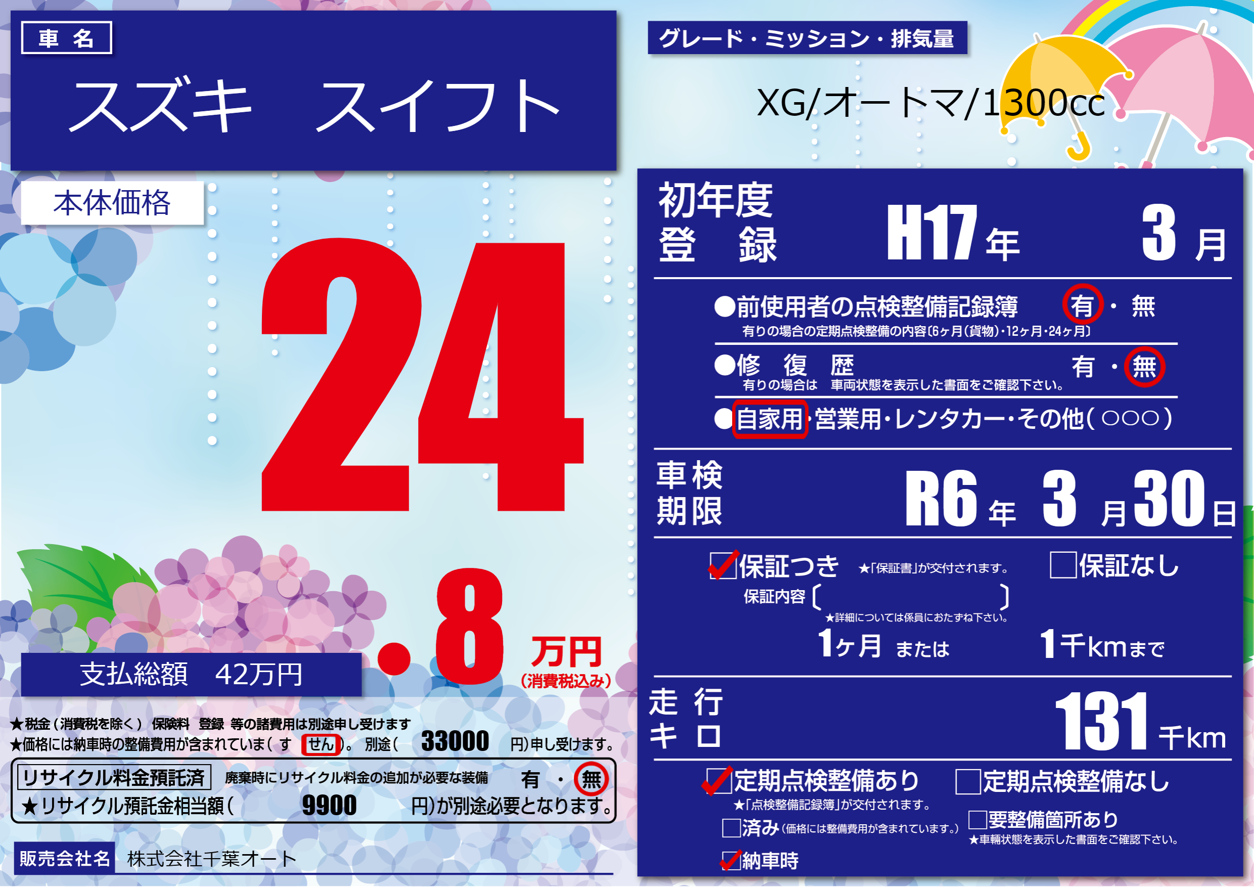 車検制限 | R6年3月30月 |