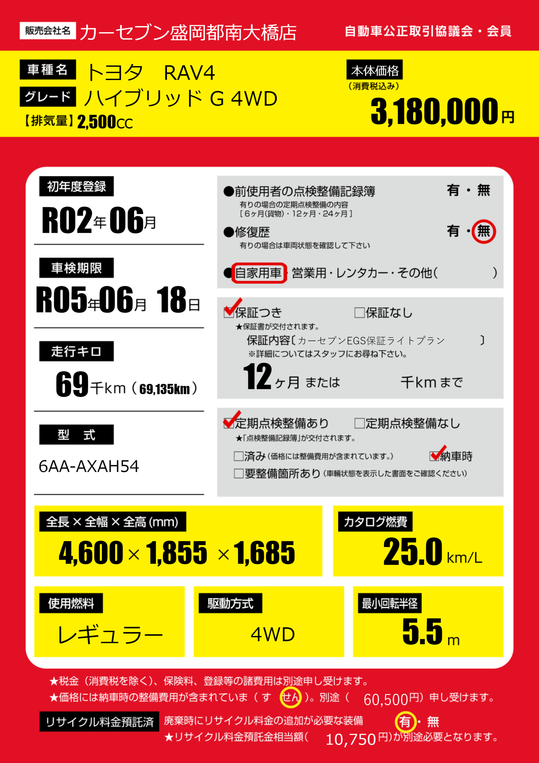 保証内容(カーセブンEGS保証ライトプラン) 12ヶ月または千km
