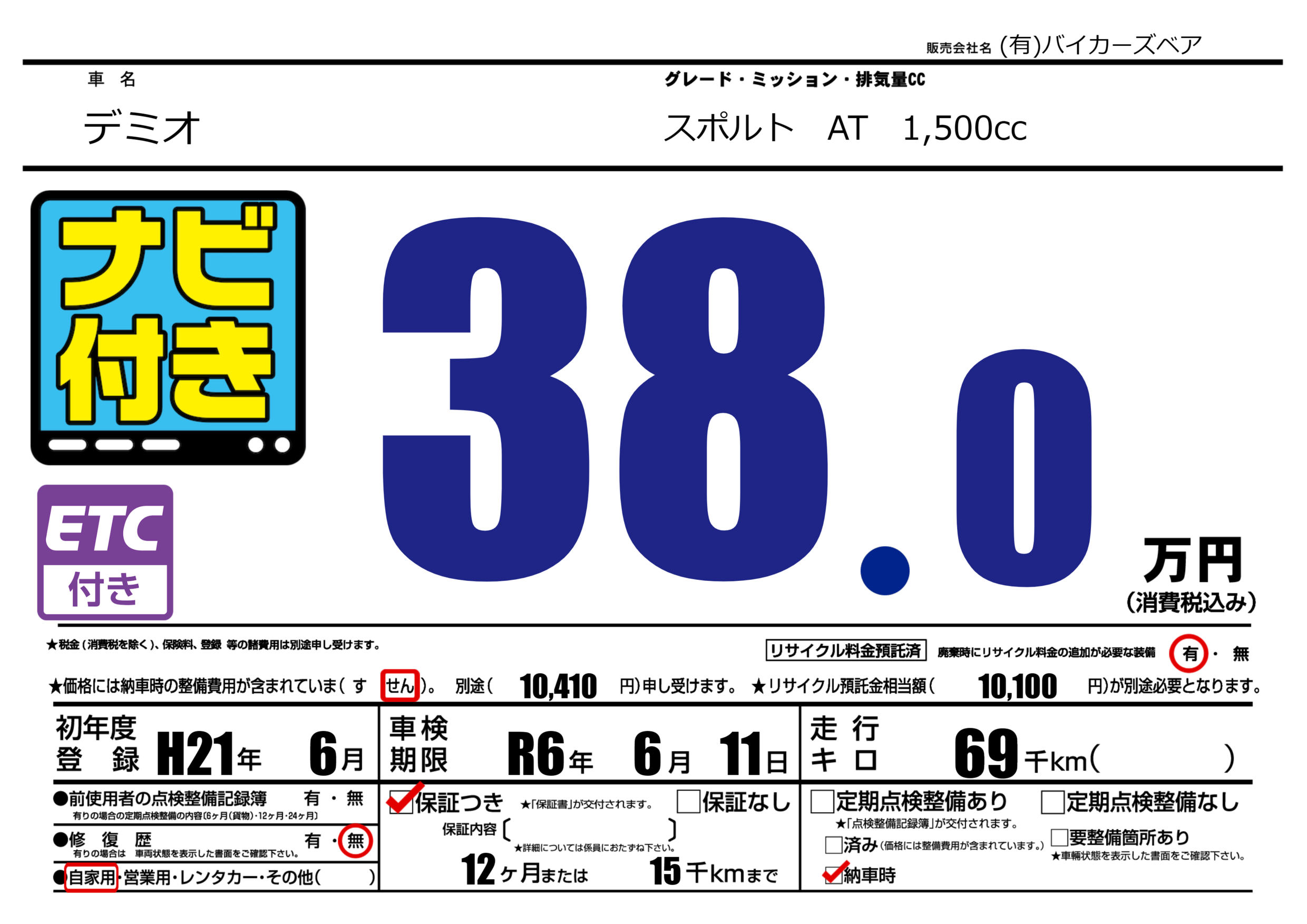 | 車名 | デミオ | グレード ミッション 排気量 |