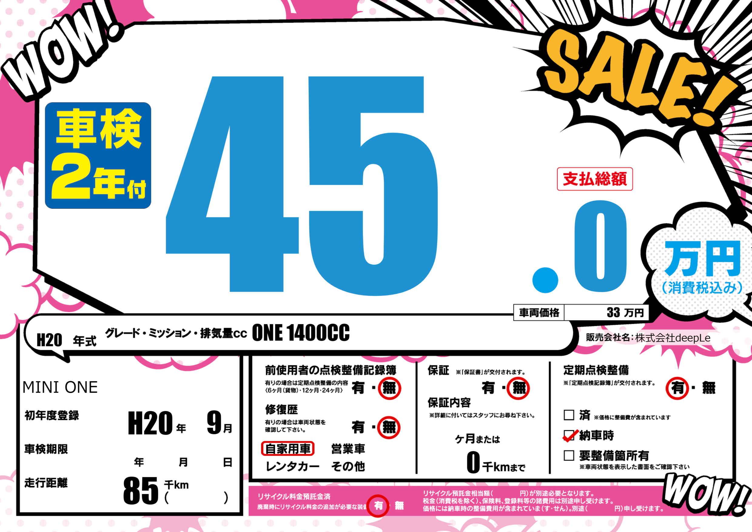 | 車名 | MINI ONE | グレード ミッション 排気量 |