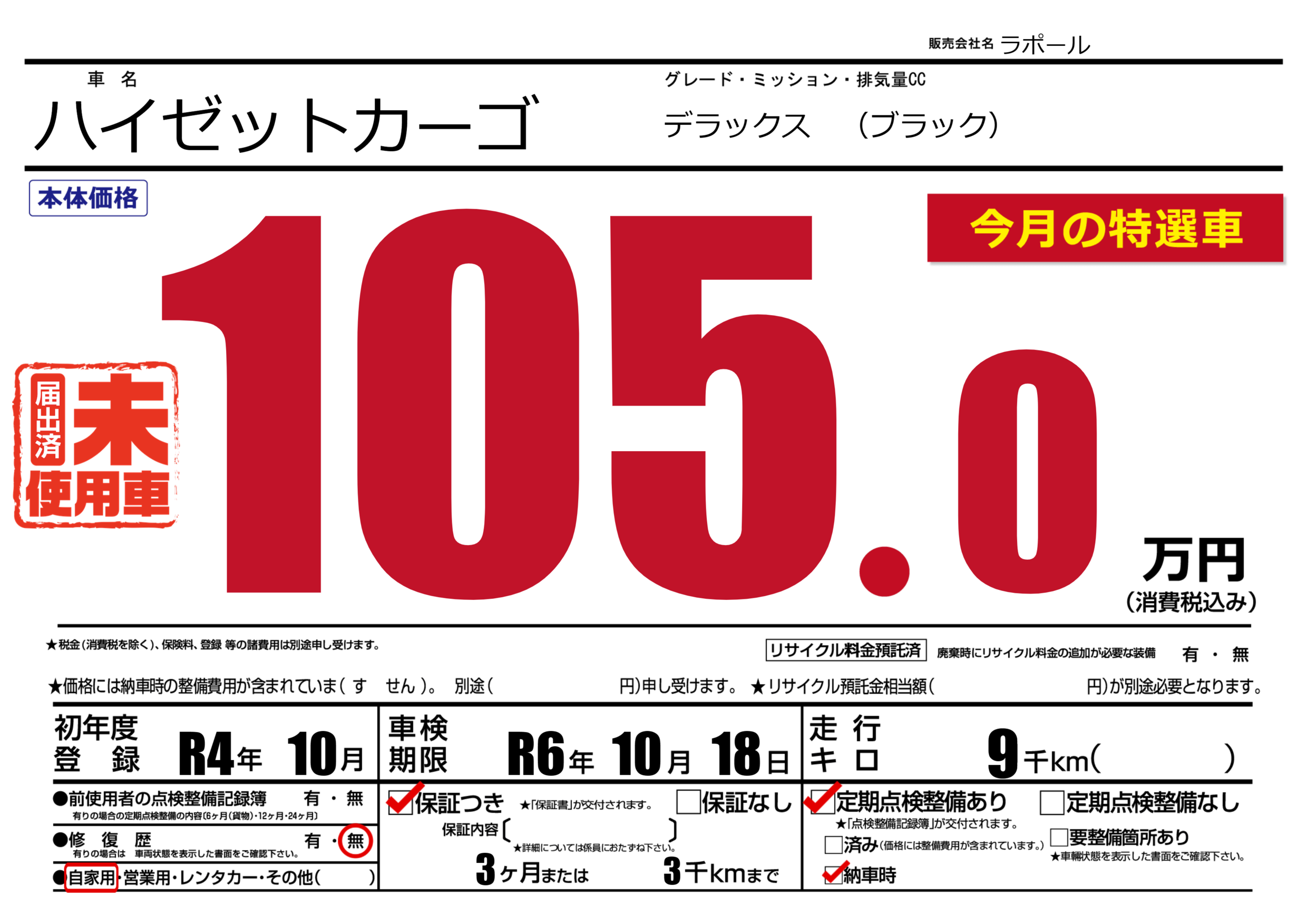 | 走行キロ | 0.9万km | 初年度登録 | R4年10月 |