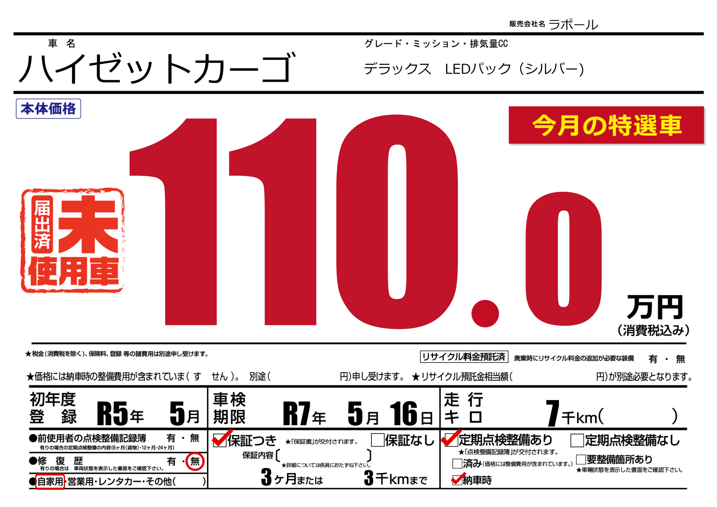 保証付き 保証内容(---) 3ヶ月または(3)千kmまで |
