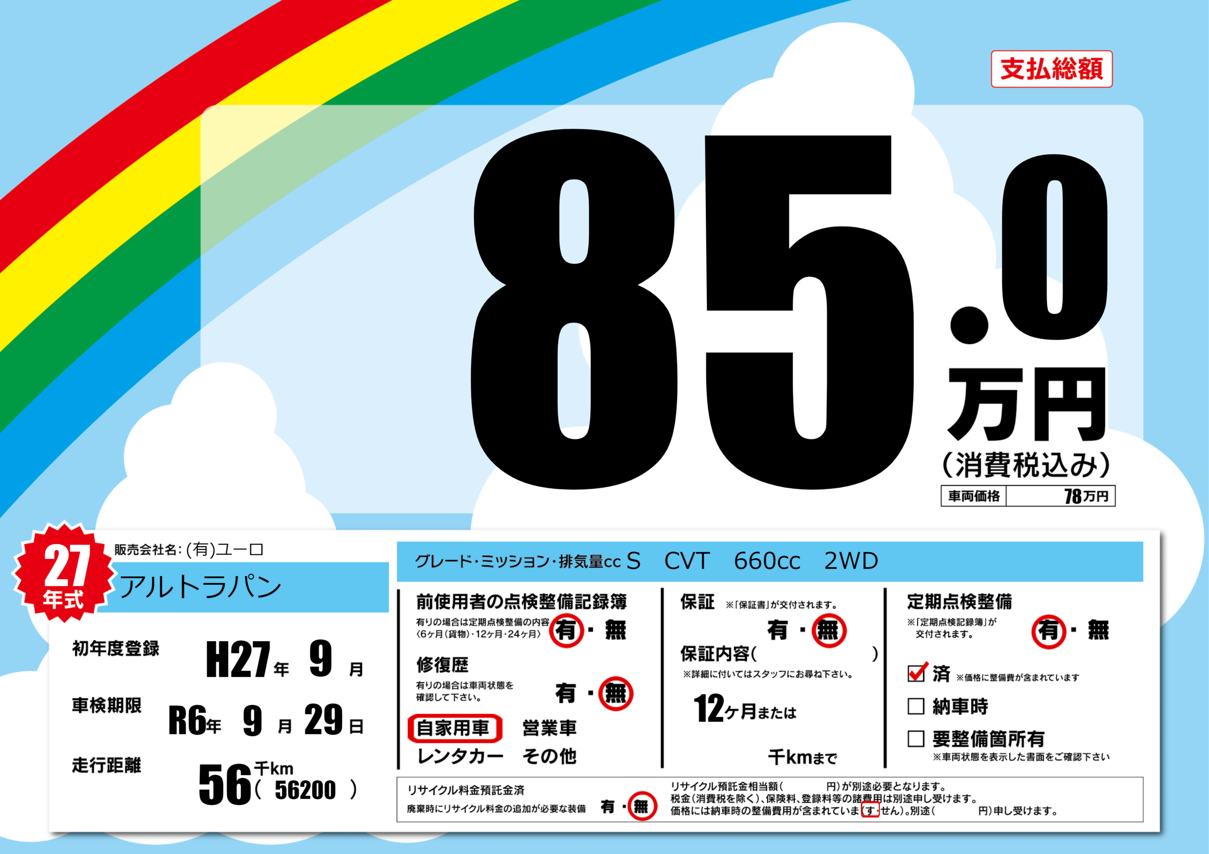 | 定期点検整備 | 定期点検整備あり 定期点検整備済み | ||