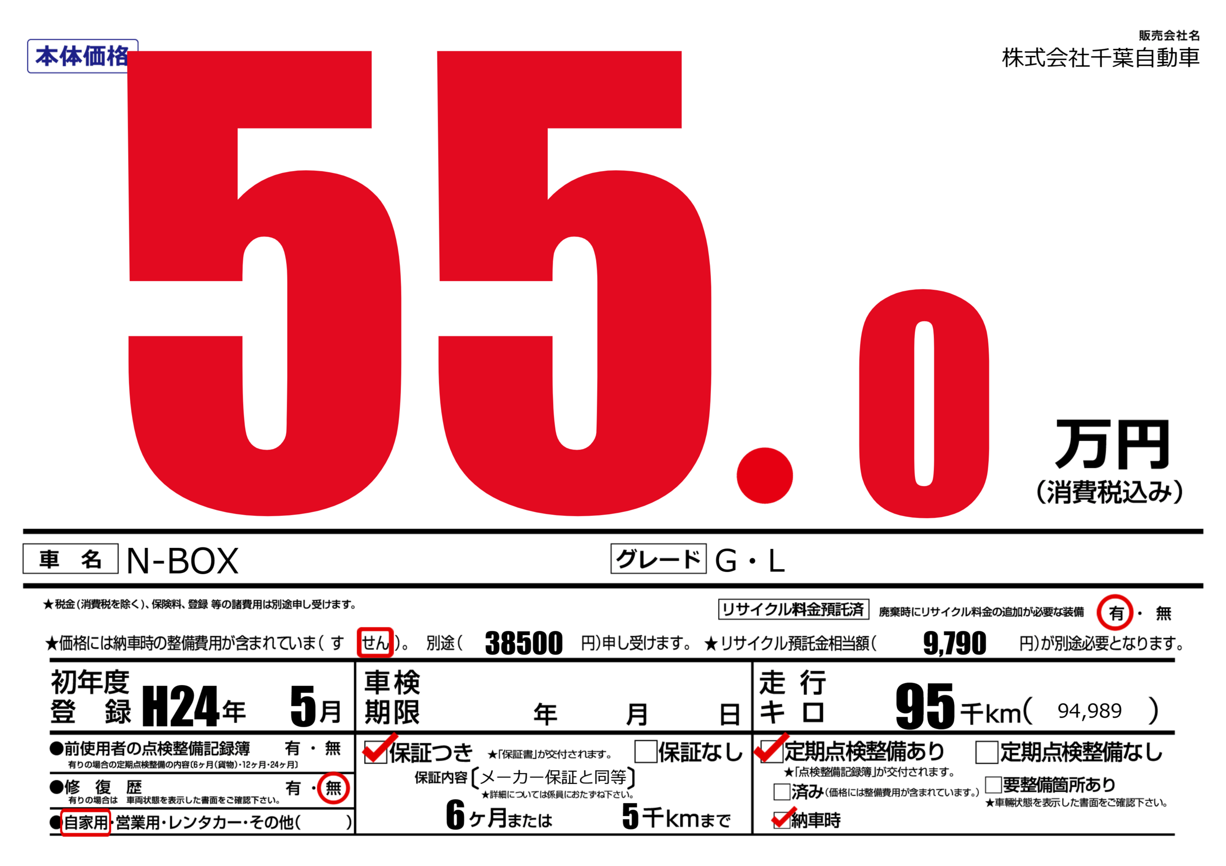 | 車名 | N-BOX | グレード ミッション 排気量 |