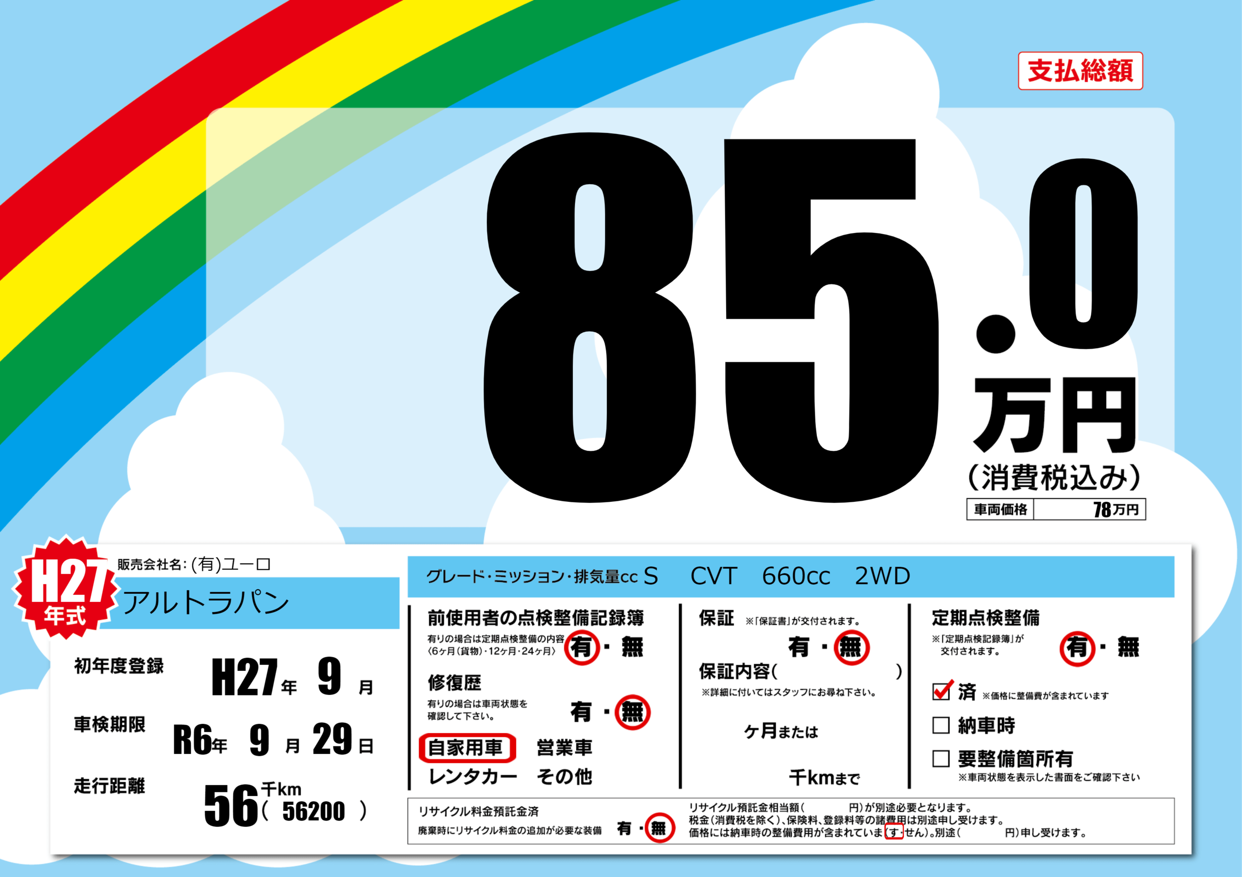 | 定期点検整備 | 定期点検整備あり 定期点検整備済み | ||