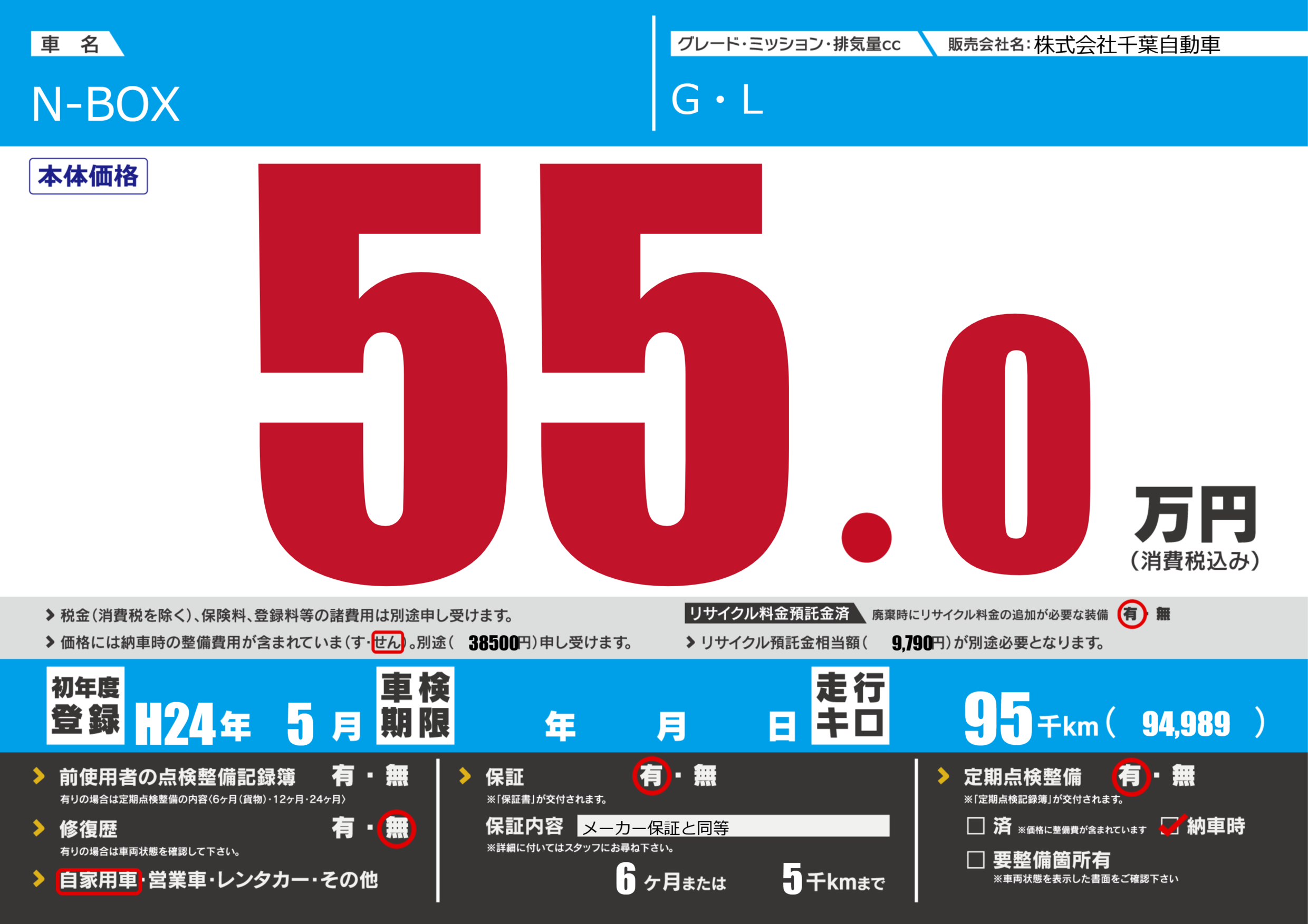 保証内容(メーカー保証と同等) 6ヶ月または5千km