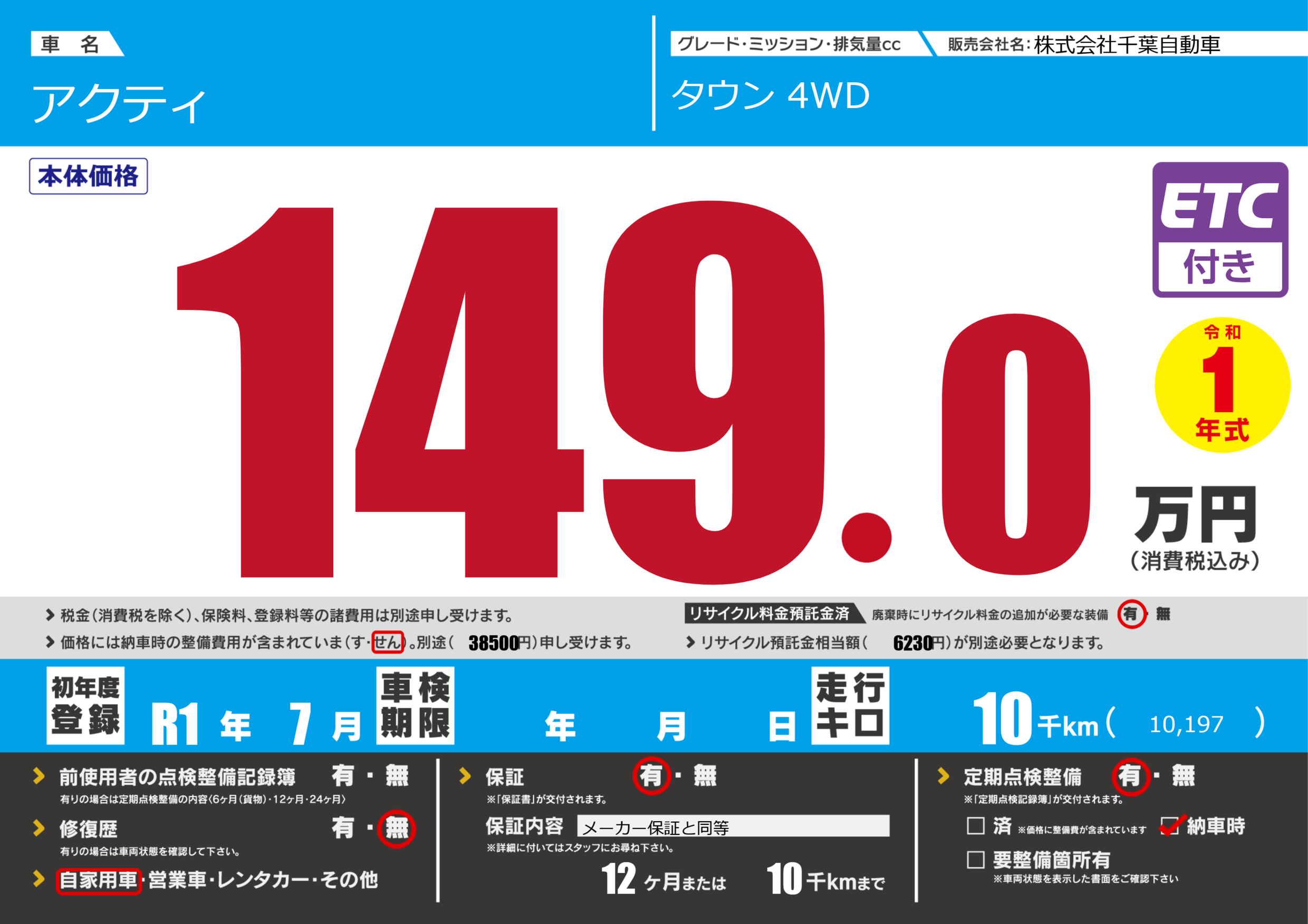 保証付き 保証内容(メーカー保証と同等) 12ヶ月または(10)千kmまで |