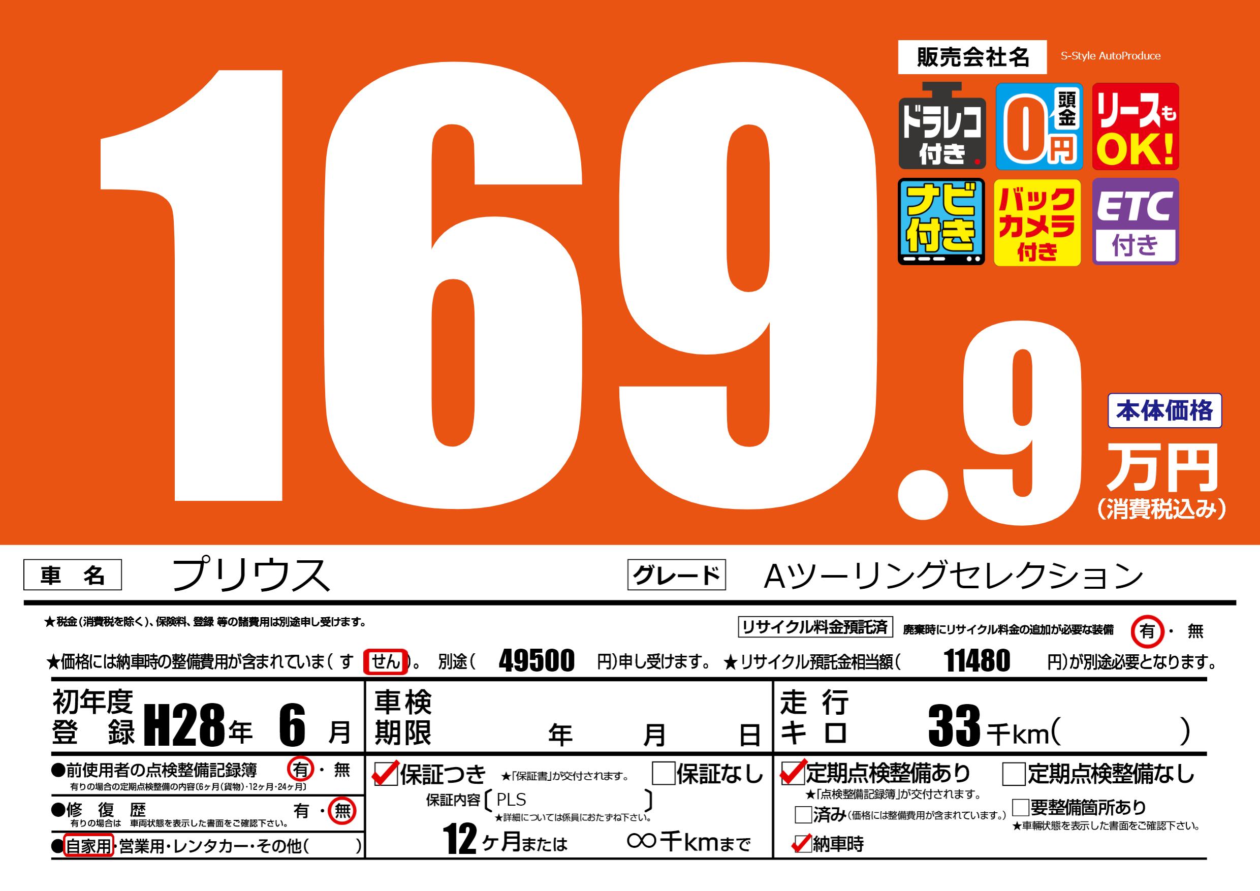 保証付き 保証内容(PLS) 12ヶ月または(∞)千kmまで |