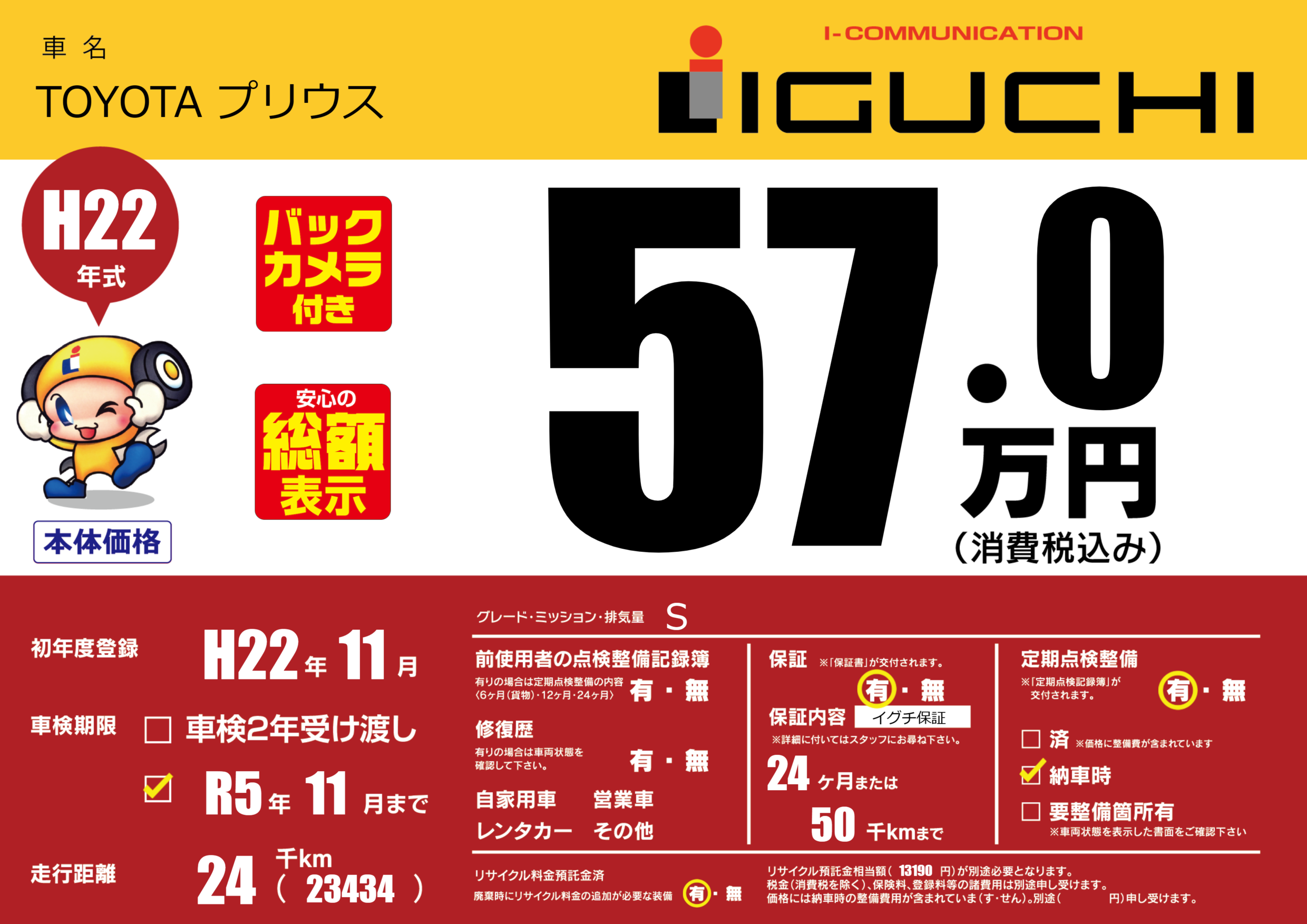 保証付き 保証内容(イグチ保証) 24ヶ月または50千km |