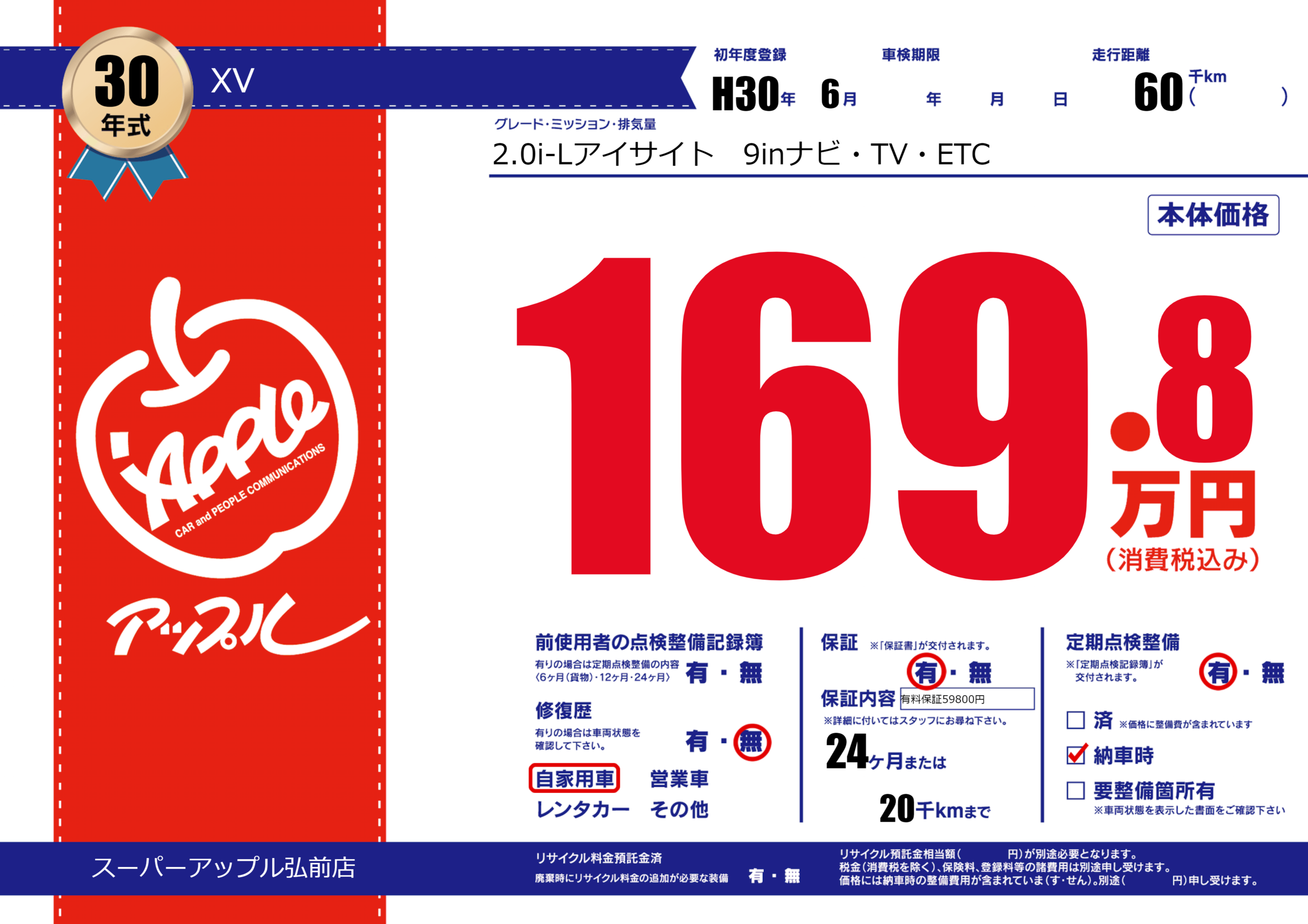 | 定期点検整備 | 定期点検整備あり 納車時あり | ||