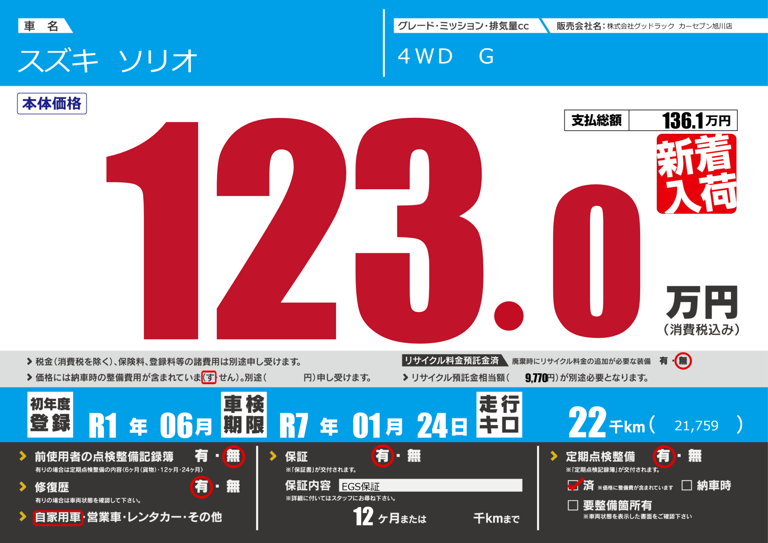 | 定期点検整備 | 定期点検整備あり 定期点検整備済み | ||
