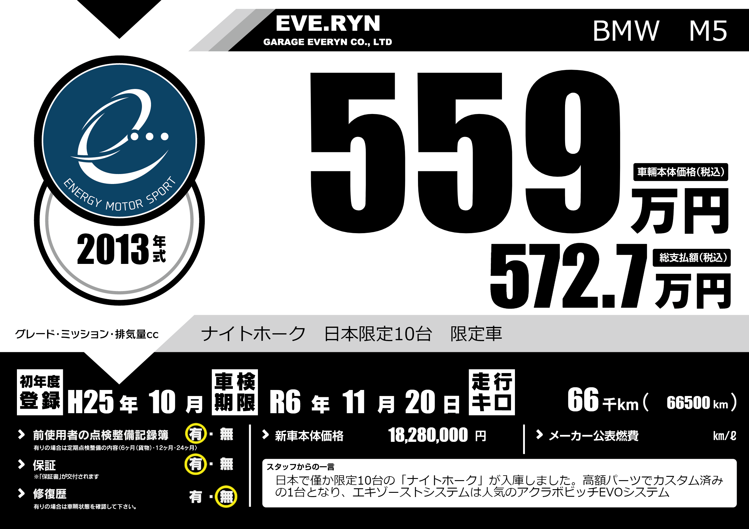 | 車名 | BMW M5 | グレード ミッション 排気量 |