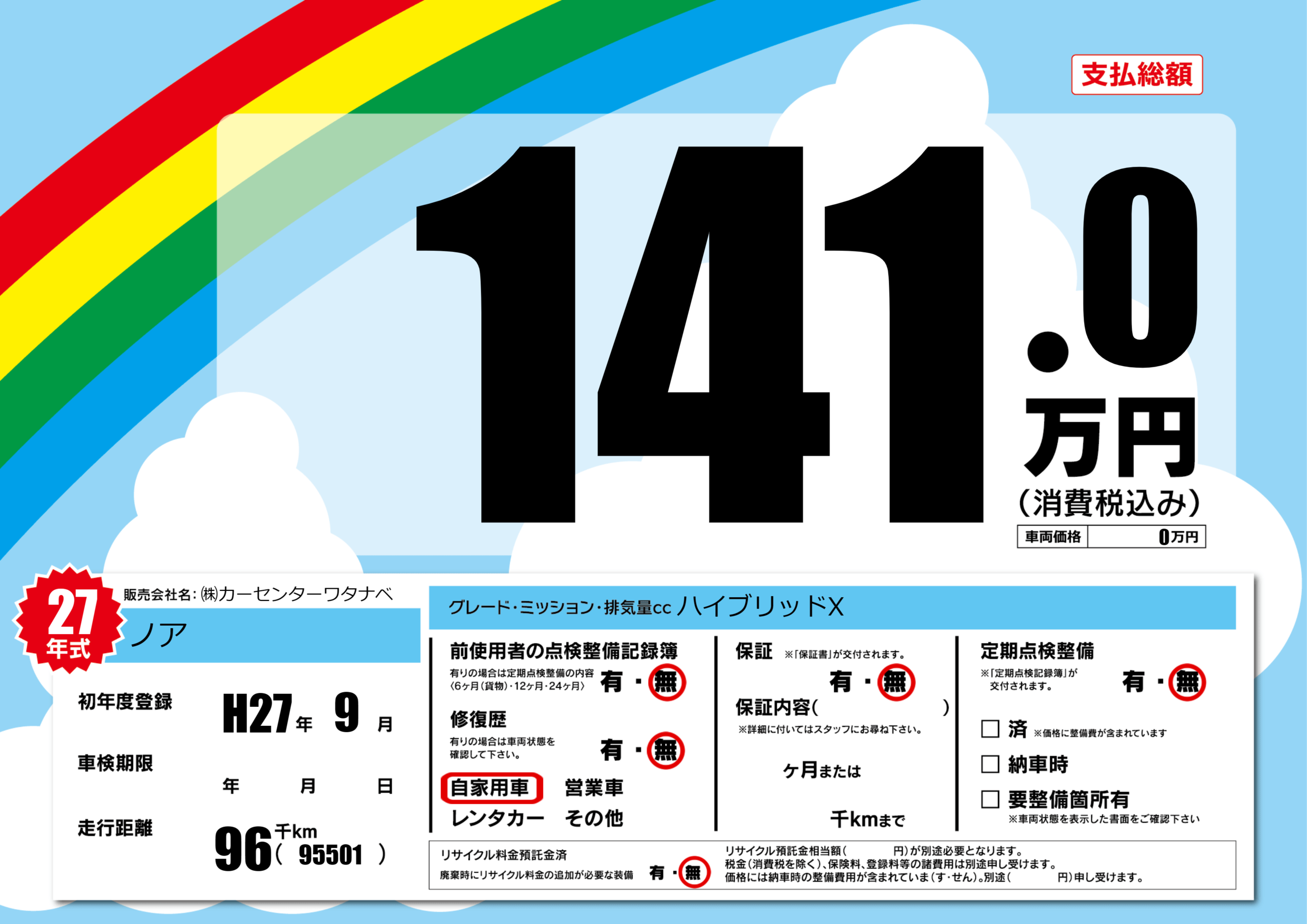 | 定期点検整備 | 定期点検整備なし | ||