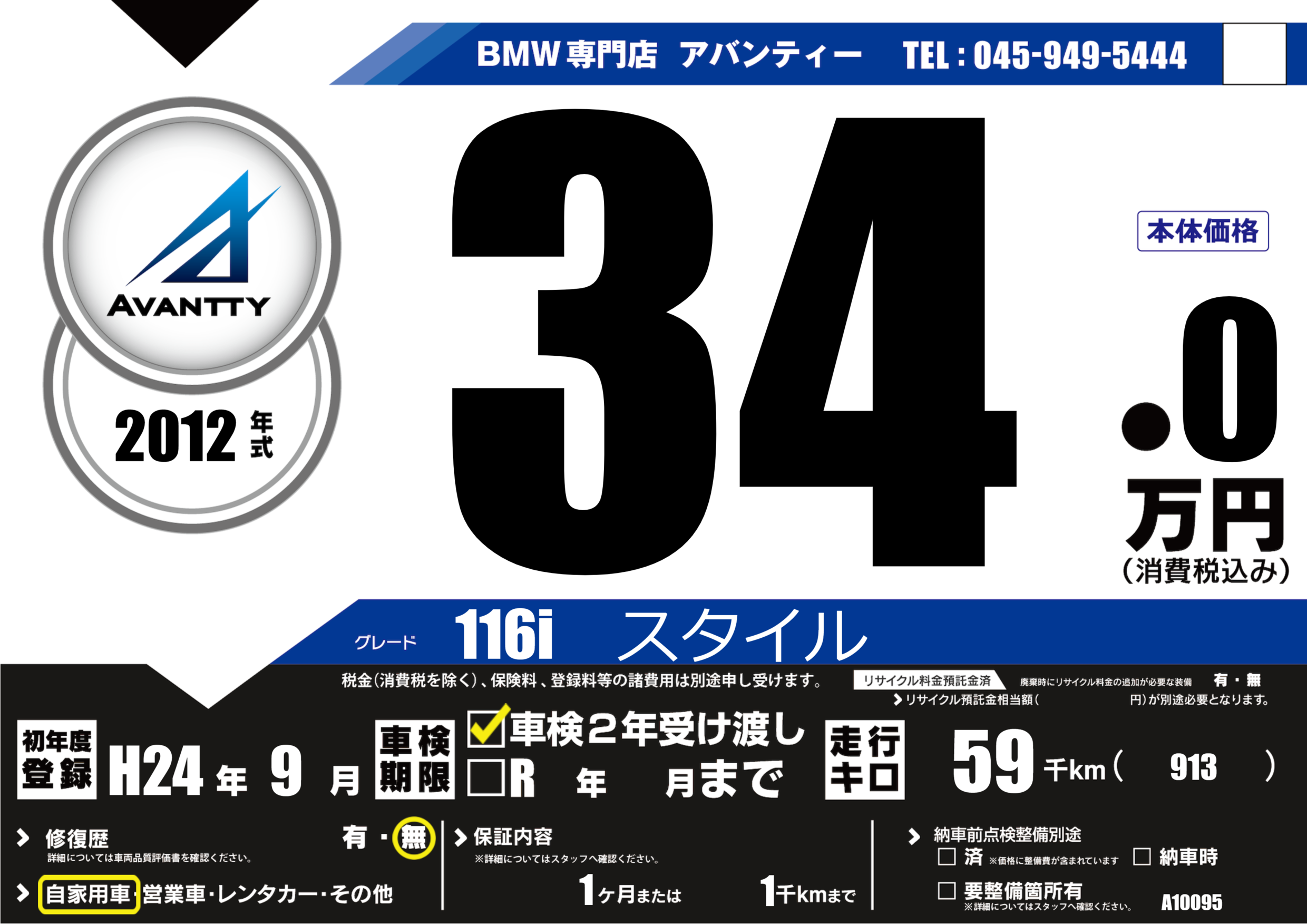 | 走行キロ | 5.9万km | 初年度登録 | H24年9月 |