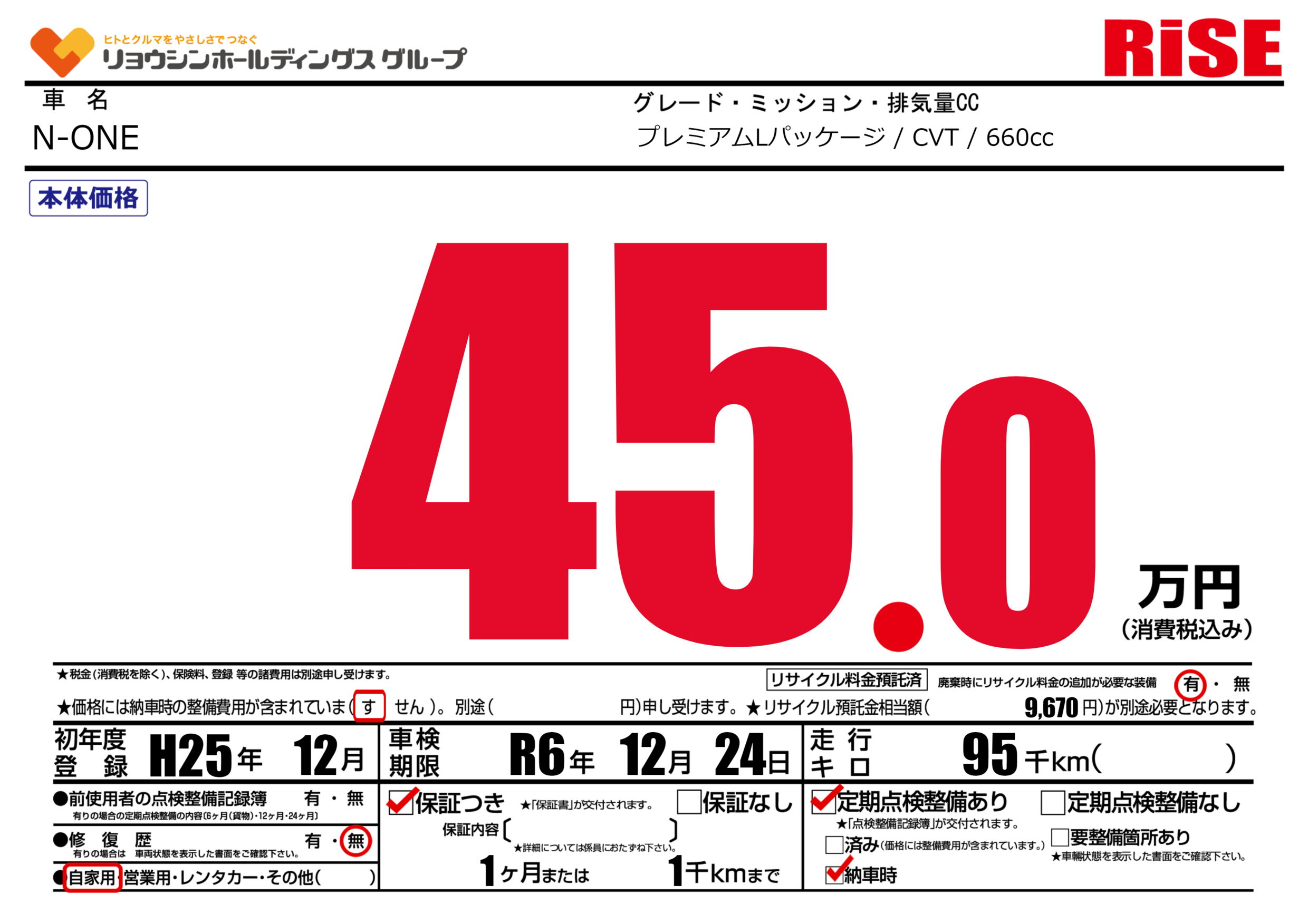 | 車名 | N-ONE | グレード ミッション 排気量 |